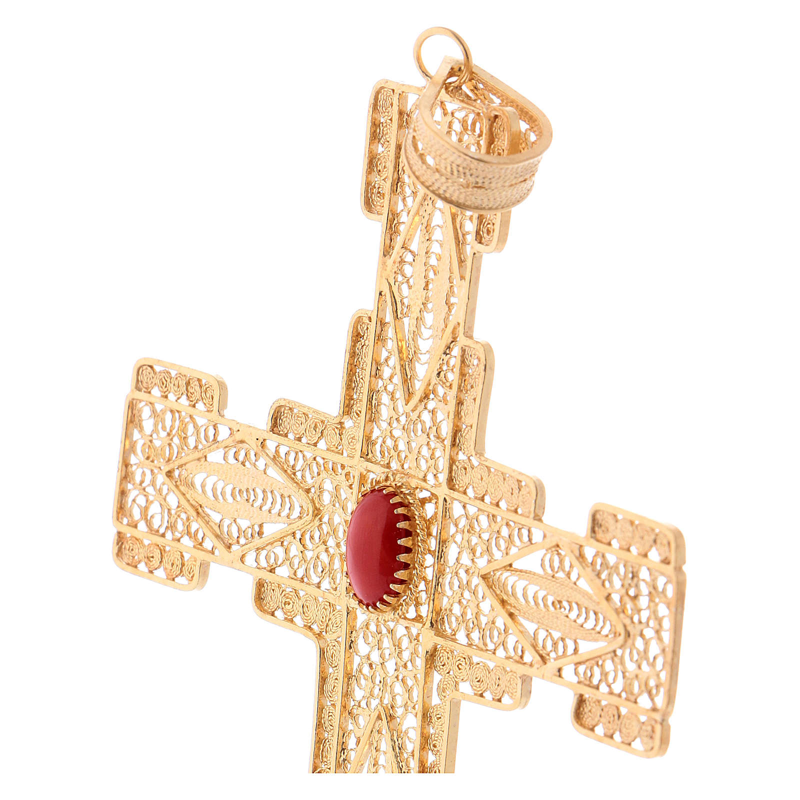 Krzyż pektoralny filigran srebra 800 złocony koral