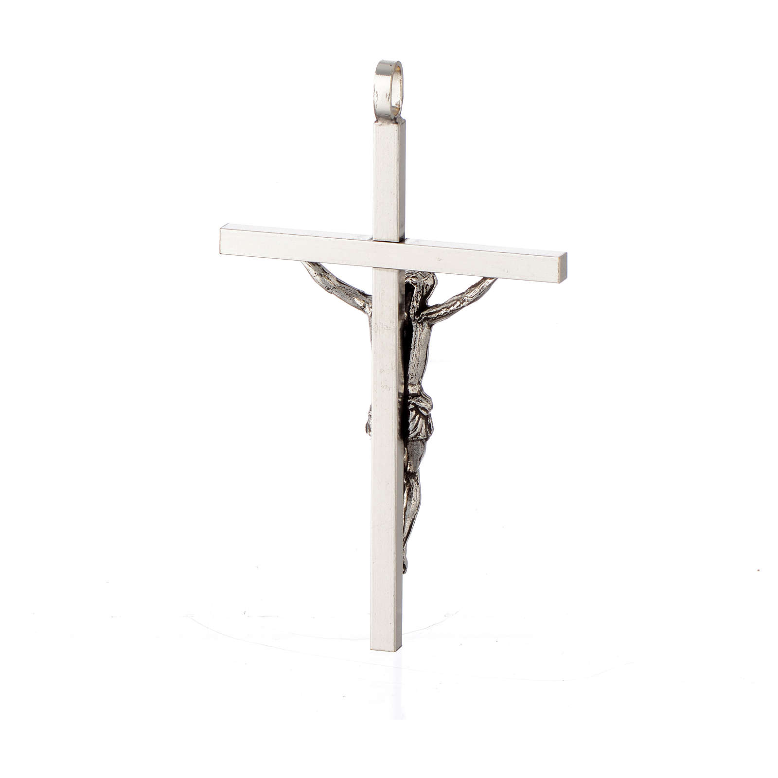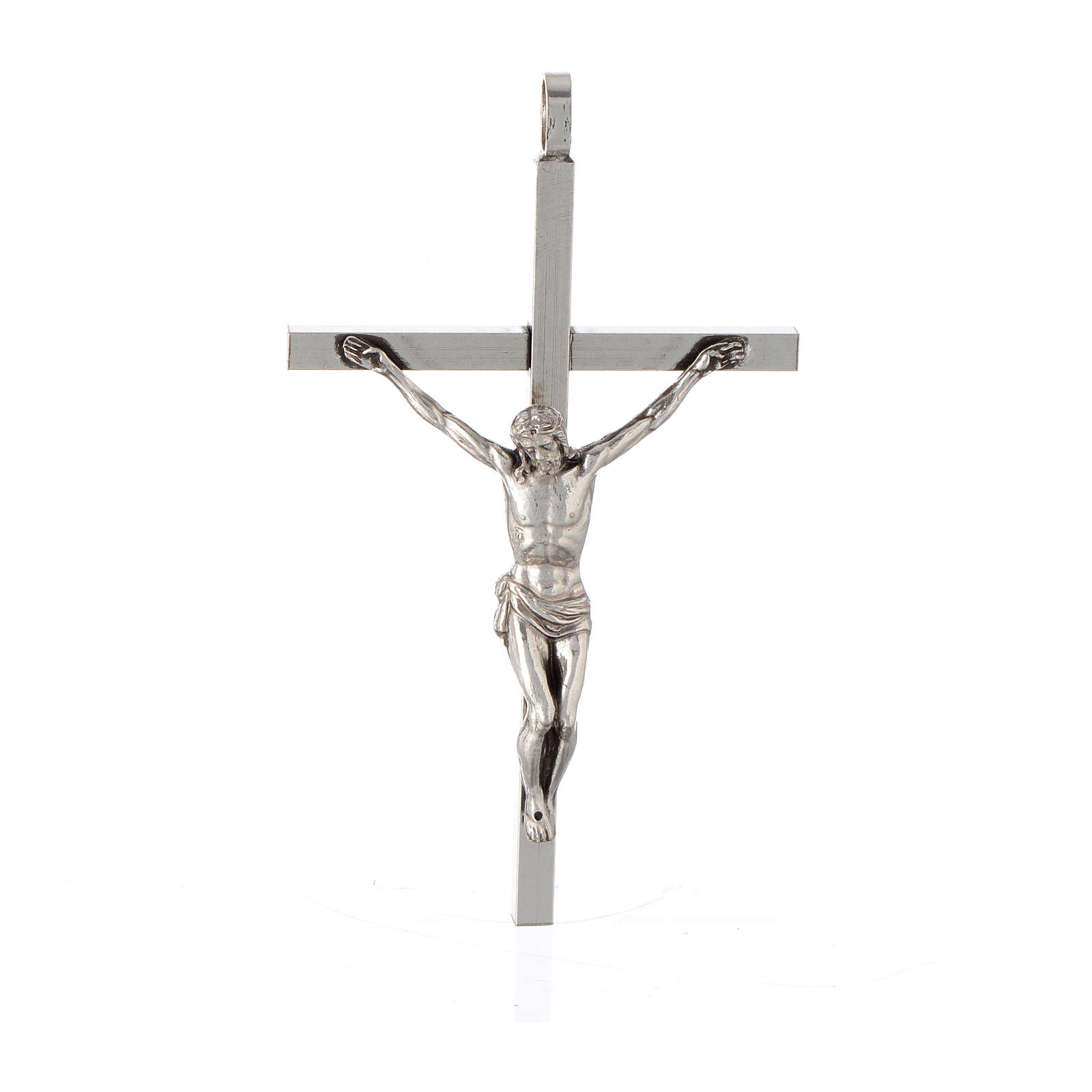 Krzyż pektoralny posrebrzany, krucyfiks wielkości 10x6,5 cm.