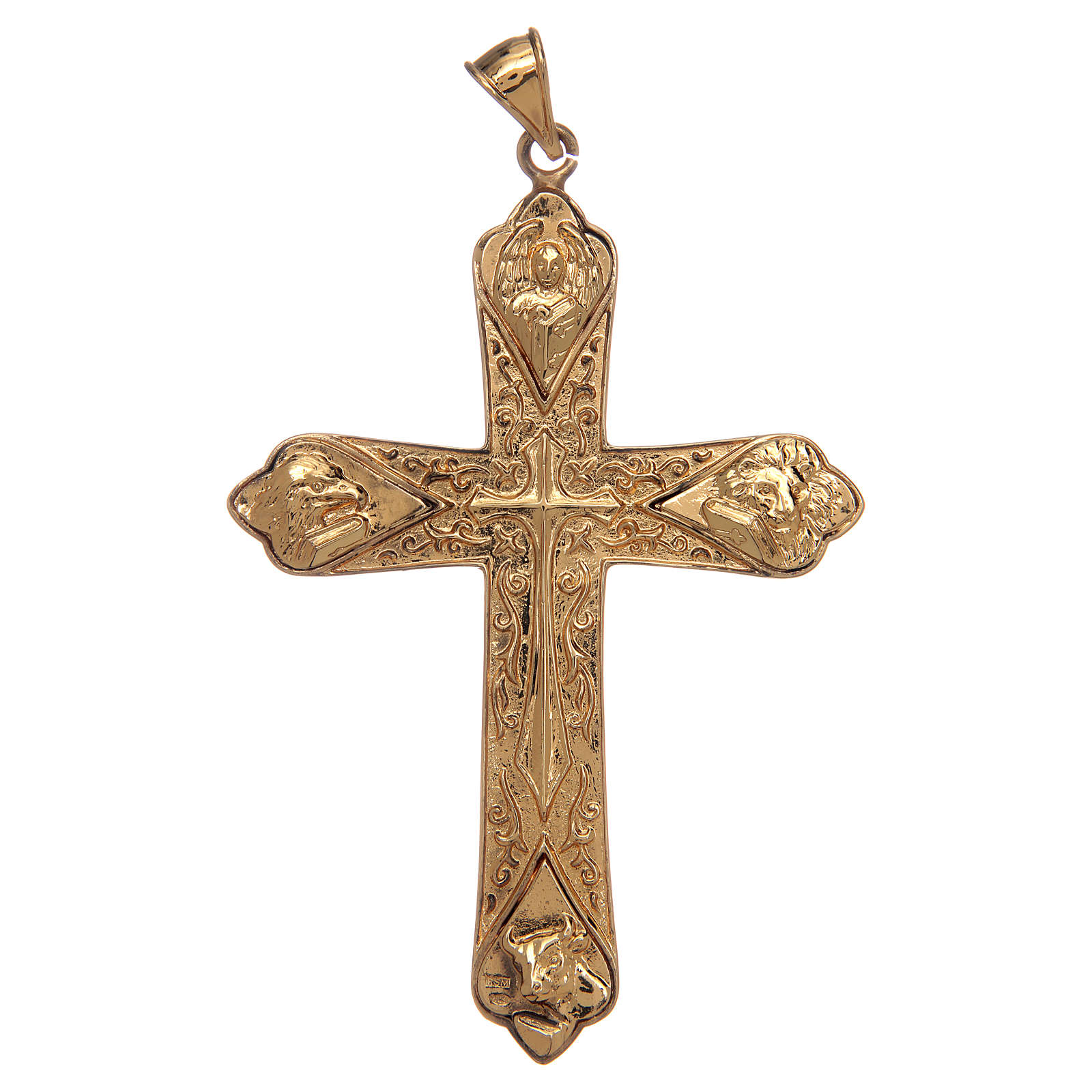 Krzyż pektoralny ze srebra 925, złocony, z wizerunkiem 4 ewangelistów.