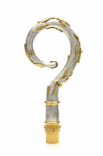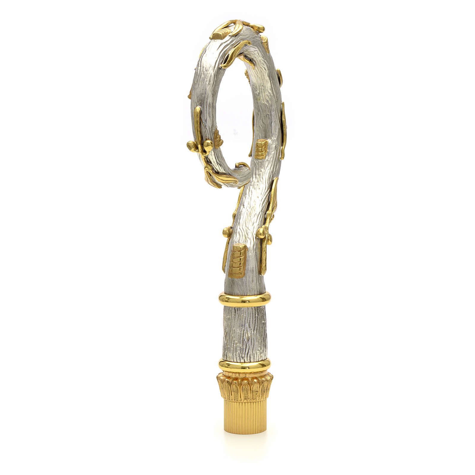 Drążek i zakończenie w kształcie spirali wykonane są z mosiądzu. Na spirali widnieją dekoracyjne reliefy przedstawiające liście drzewa oliwnego, które nadają pastorałowi większego prestiżu.