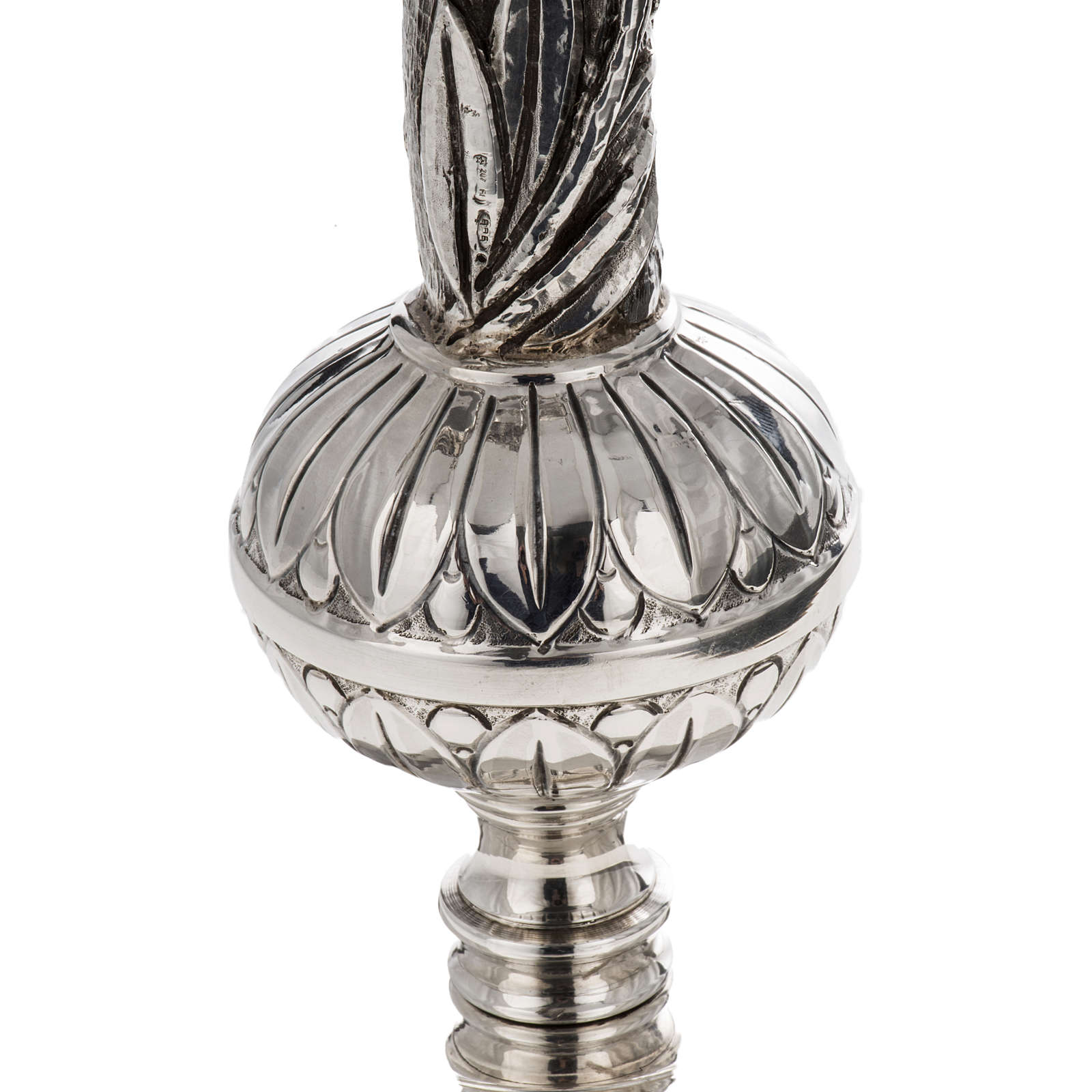 Elegancki pastorał ze srebra 966/1000 i z częścią wewnętrzną z metalu. Pastorał ten składa się z 3 drążków. Całkowita wysokość kompletnego pastorału wynosi 175 cm.