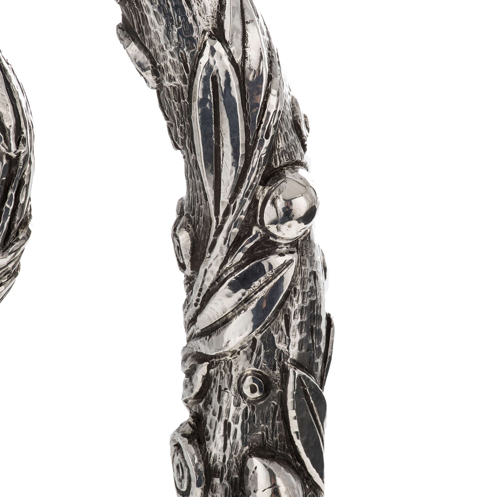 Pastorał srebro 966/1000 i metal model drzewo oliwne.