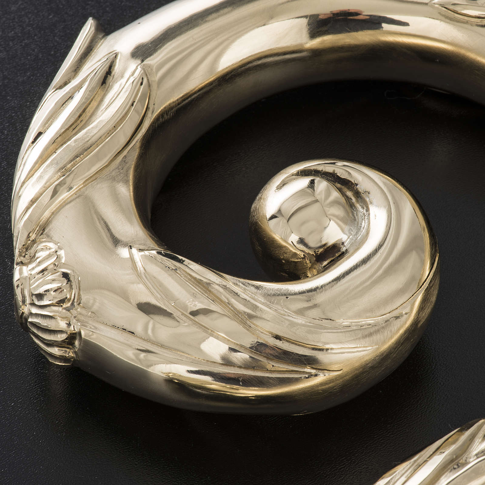 Elegancki pastorał ze srebra 966/1000 i częścią wewnętrzną z metalu. Pastorał ten składa się z 3 drążków. Całkowita wysokość kompletnego pastorału wynosi 175 cm.