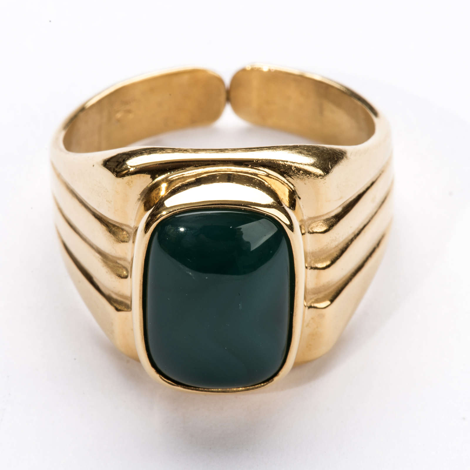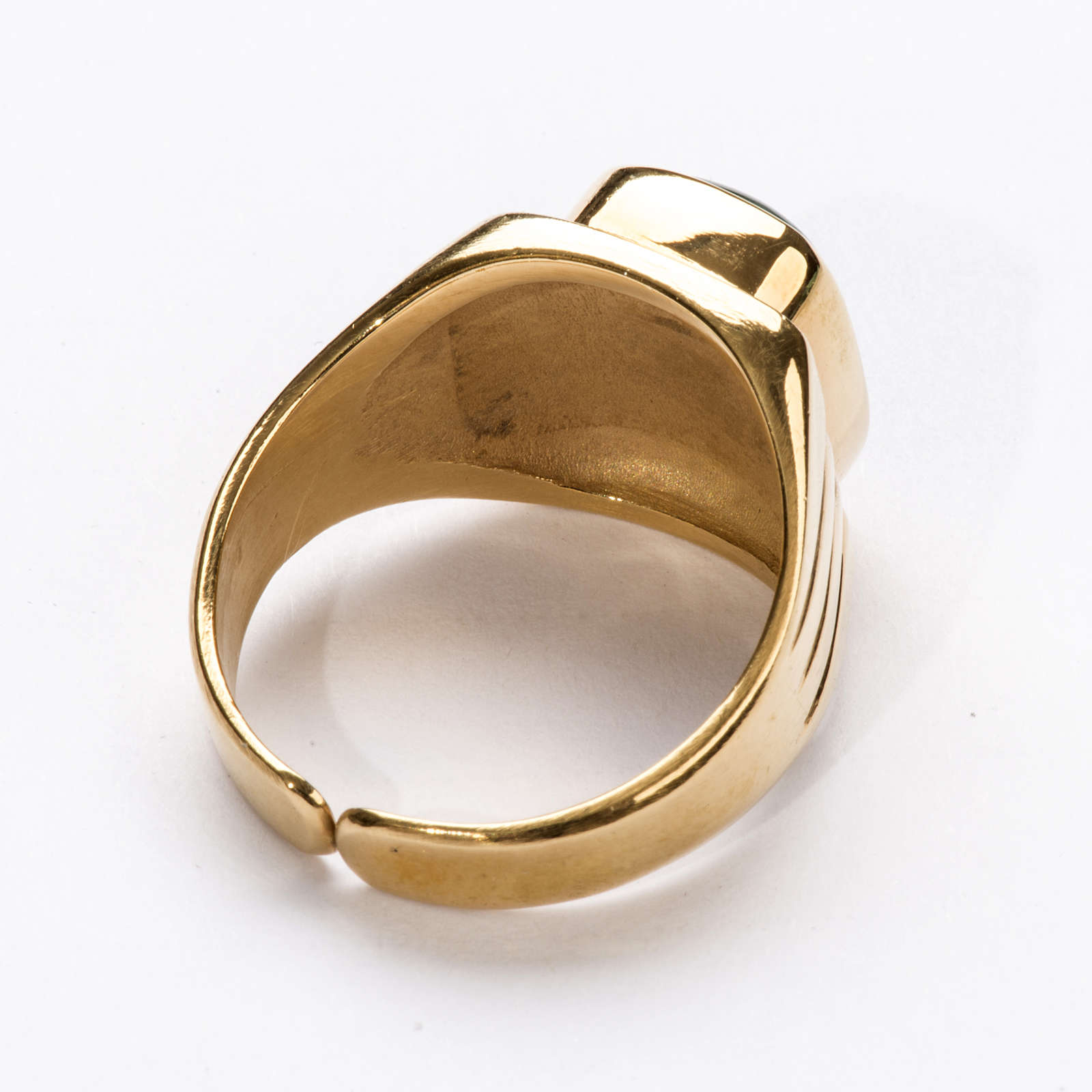 Pierścień biskupi srebro 800 pozłacane z zielonym agatem, cennym kamieniem półszlachetnym.
