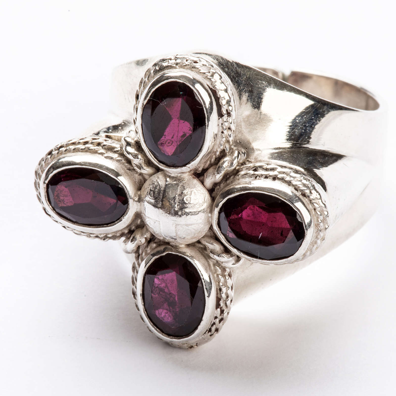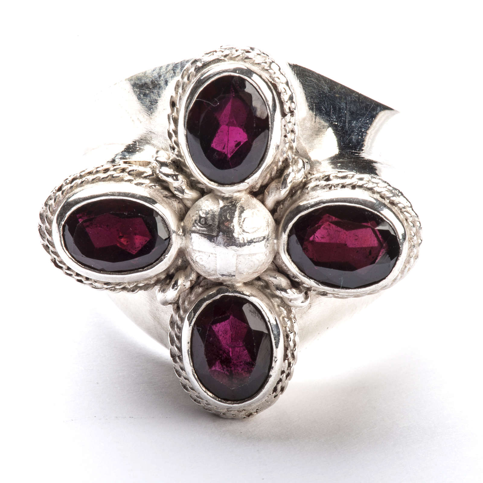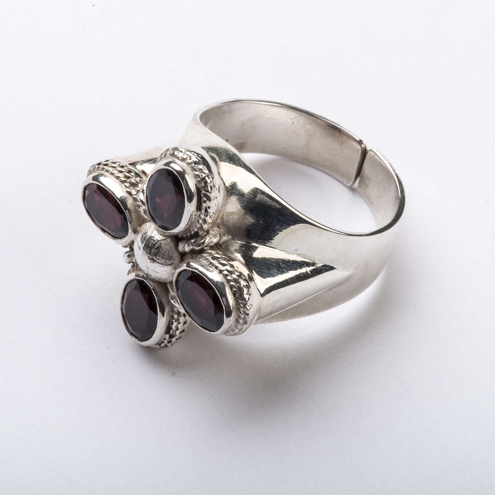 Pierścień biskupi srebro 925 z 4 granatami, cennymi kamieniami szlachetnymi.