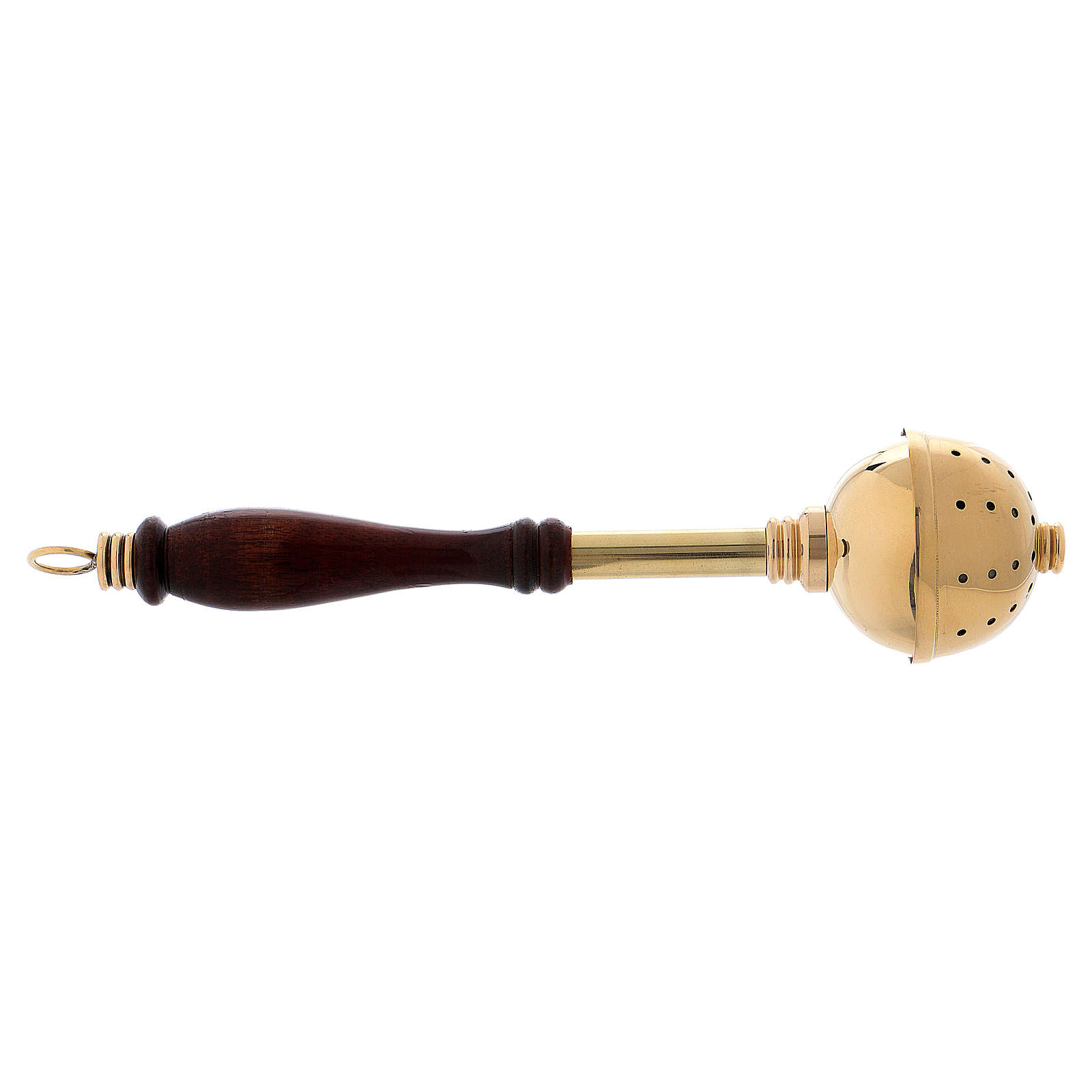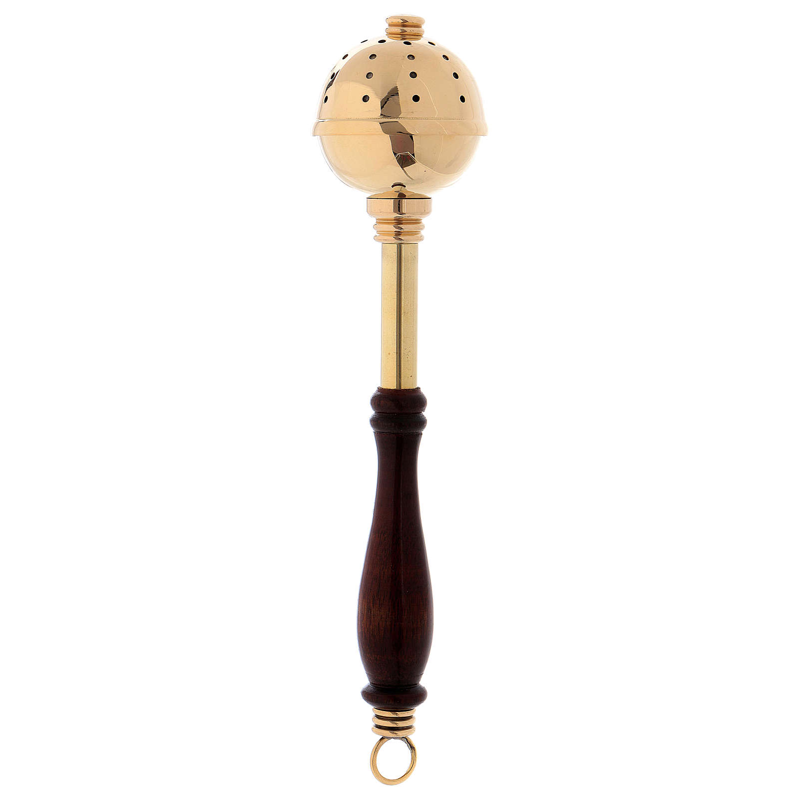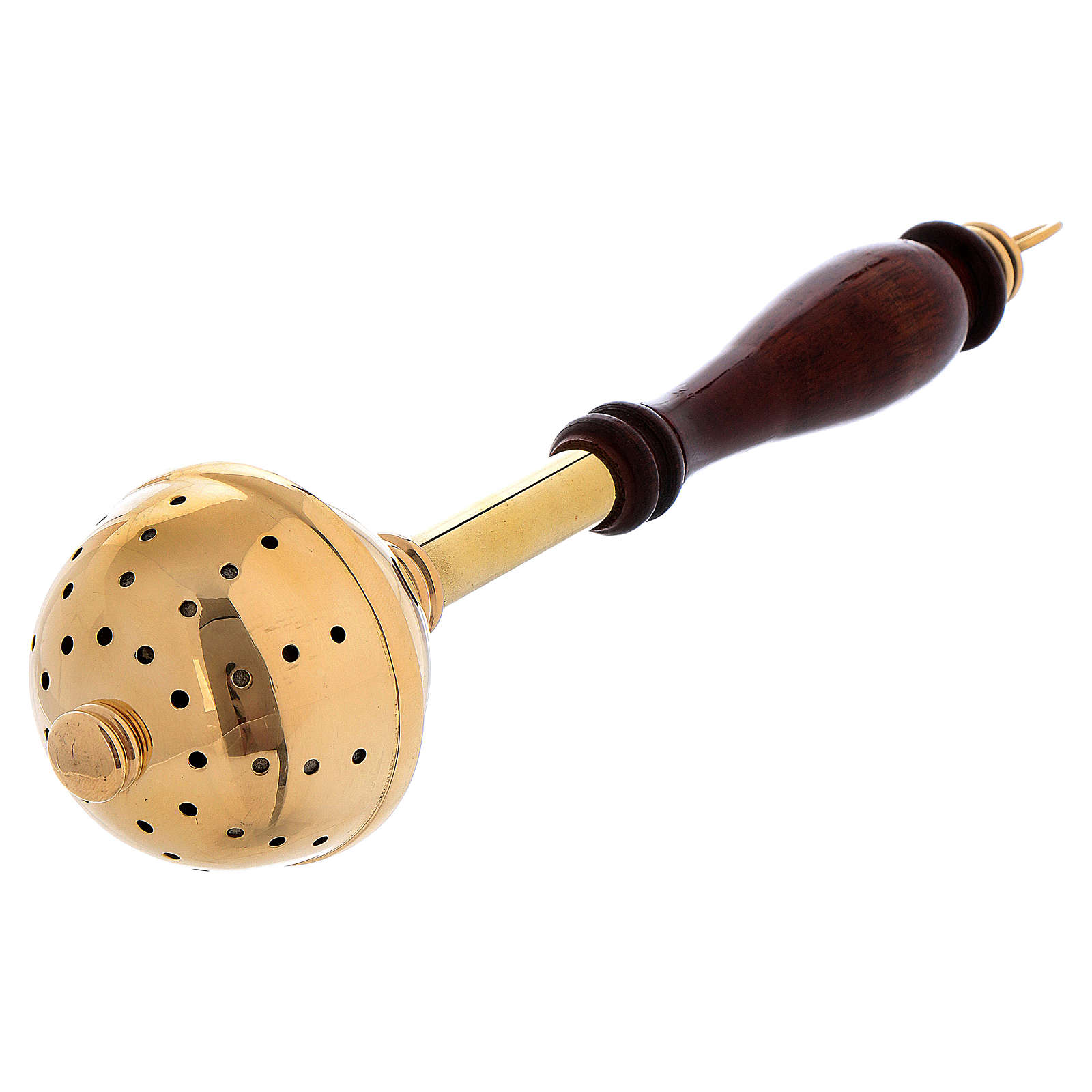 Długość tego kropidła z mosiądzu i z drewnianą rączką wynosi 29 cm.