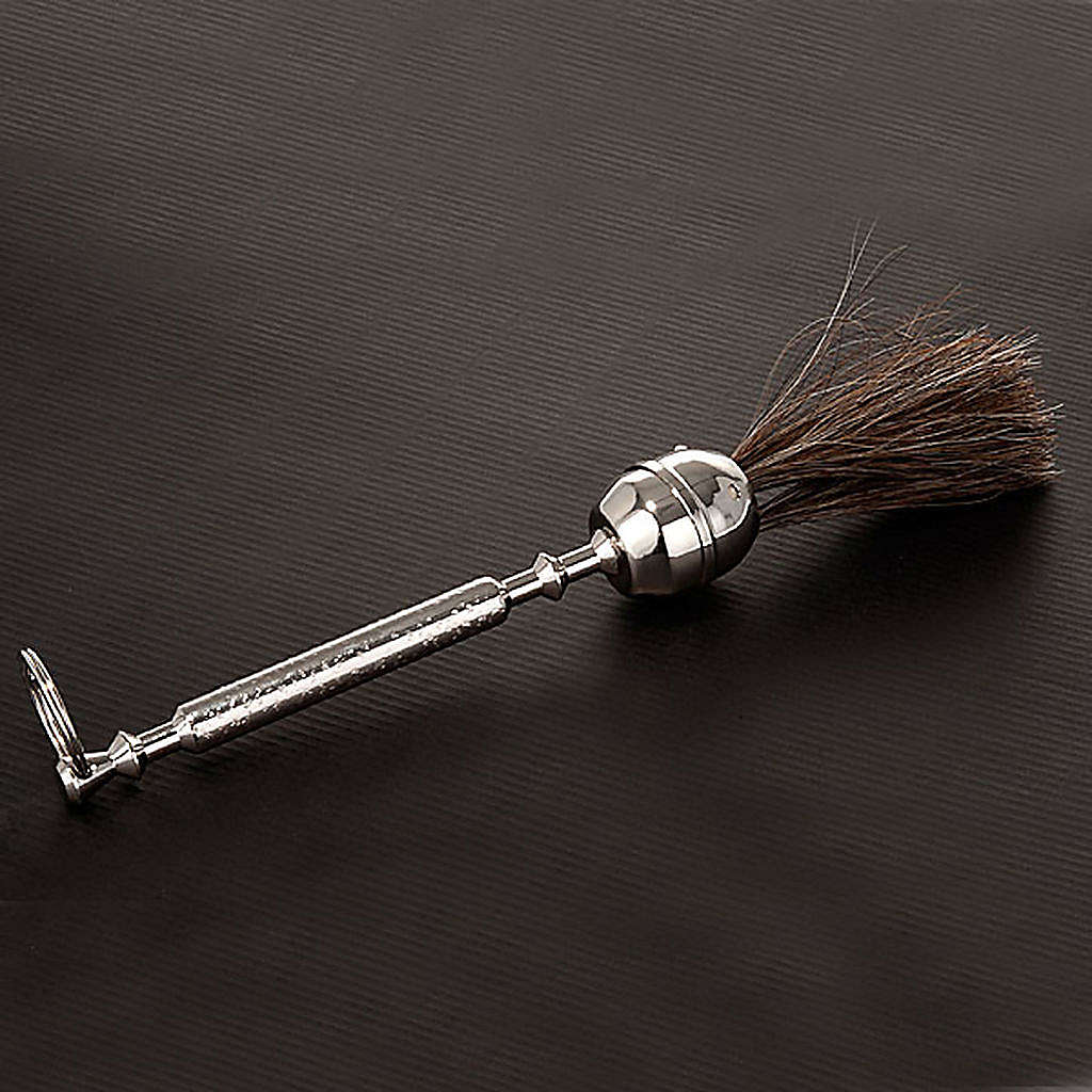 Kropidło to wykonane jest z niklowanego, polerowanego metalu i posiada włosie o długości ok.10 cm. Jest lekkie i jednocześnie masywne, jego uchwyt wygodny a powierzchnia dekorowana.