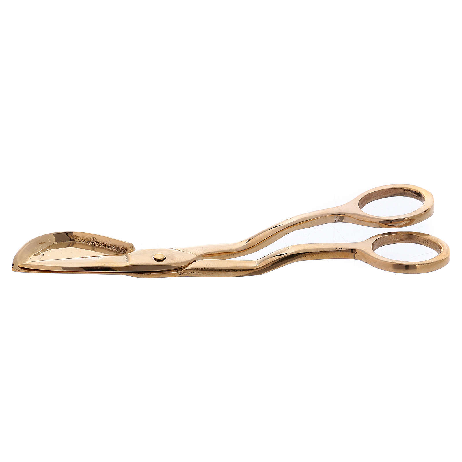 Nożyce do świecy z mosiądzu pozłacanego i polerowanego.