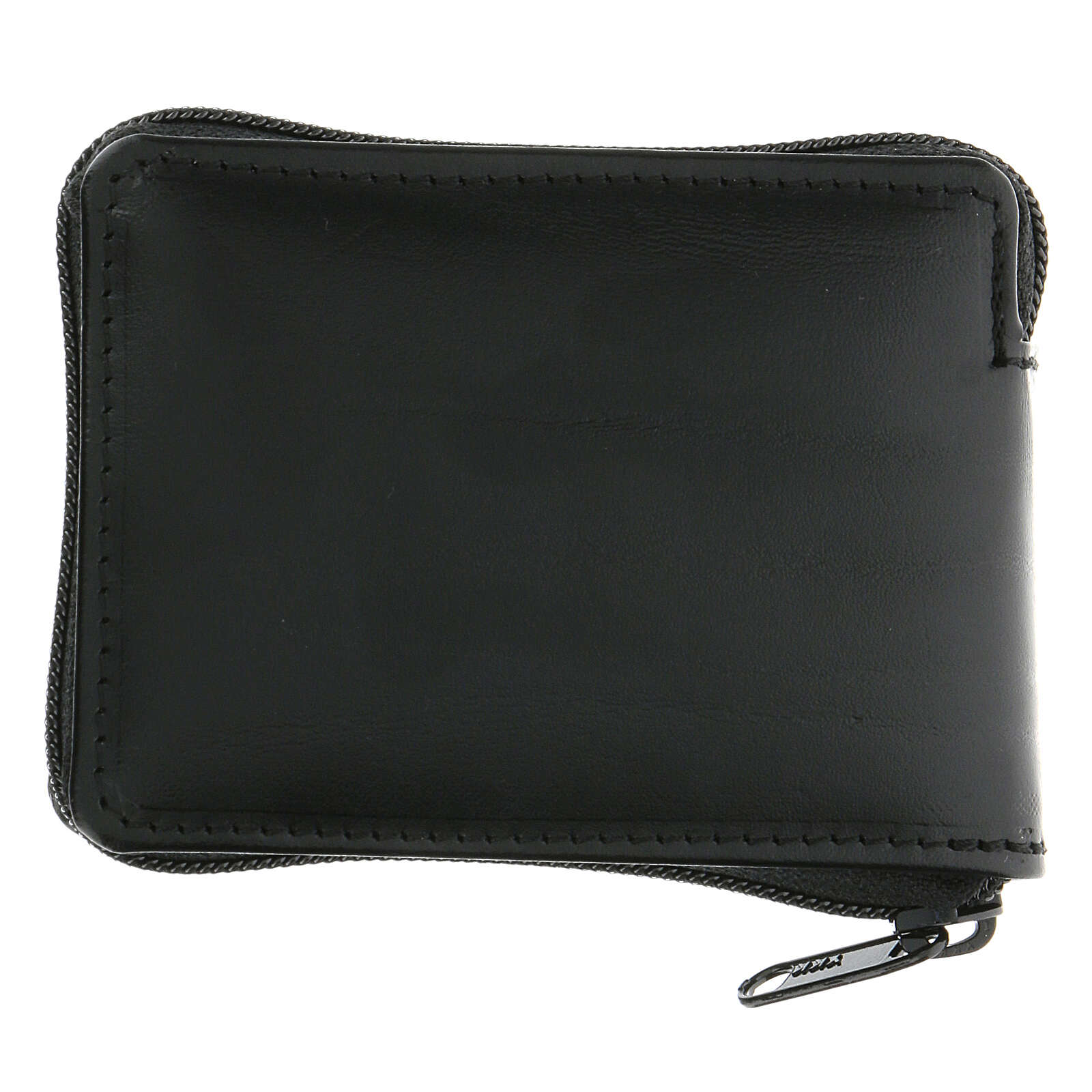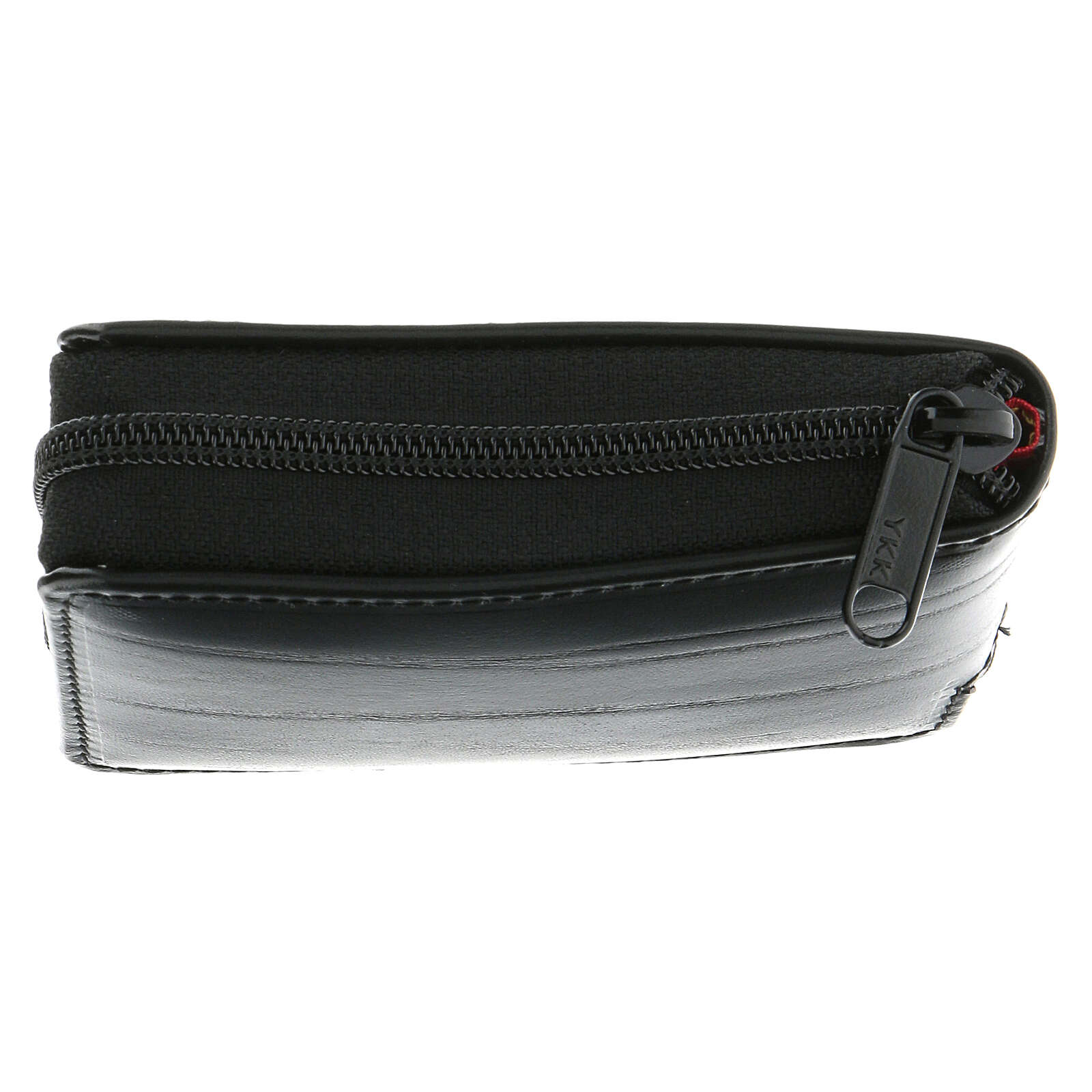 Ta skórzana bursa jest na zewnątrz czarnego koloru, wewnątrz zaś wyłożona jest czerwonym materiałem i całość zamykana jest na elegancki suwak.