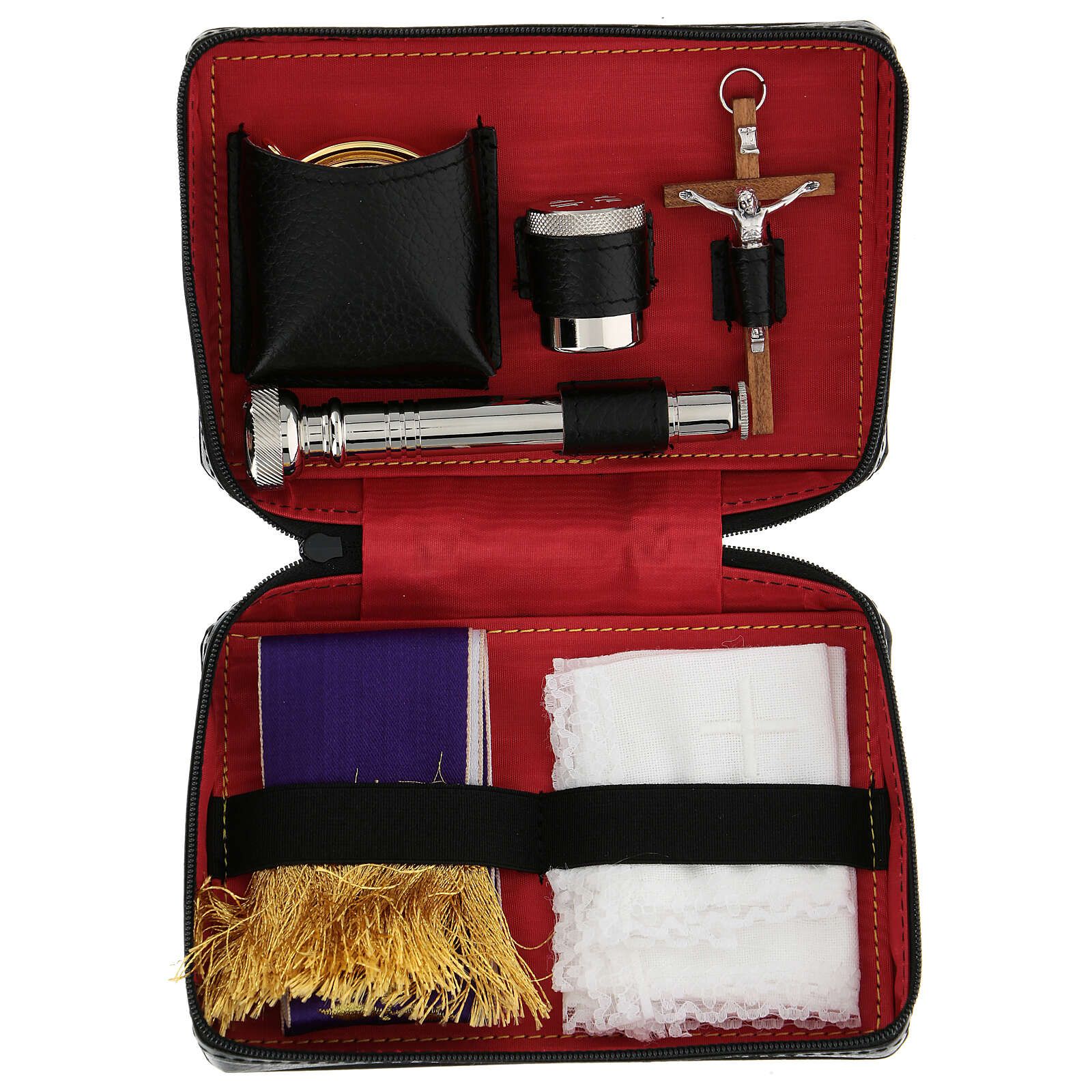 Jest wyposażona w 7 przedmiotów niezbędnych do wiatyku i podczas celebracji: