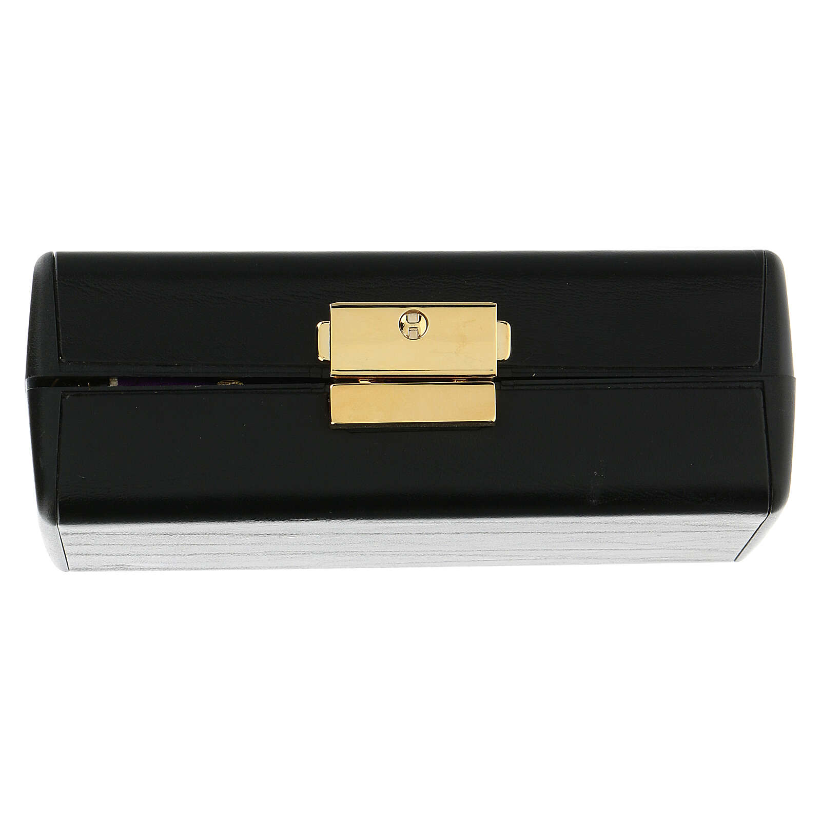 Na zewnątrz jest czarny, wykonany ze skóry cielęcej, zaś od wewnątrz z białej tkaniny.