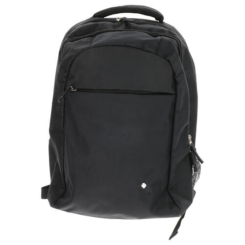 Plecak liturgiczny wykonany z nieprzemakalnej czarnej tkaniny technicznej o wymiarach 45x35x38 cm.