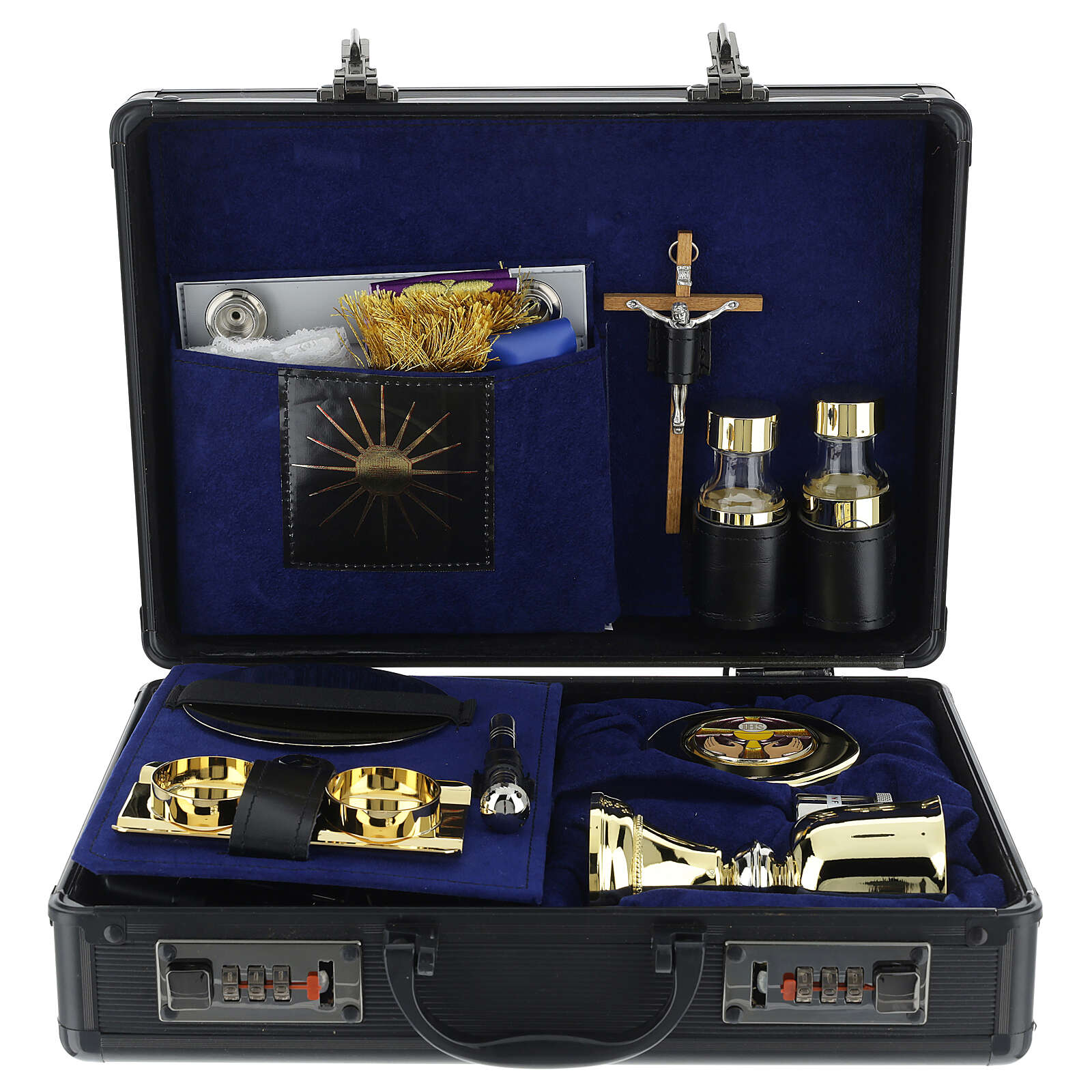 Solidna, twarda walizka zawierająca wiatyk i niezbędne akcesoria do celebracji w różnych warunkach jest niezwykle praktyczna i niewielkich rozmiarów.