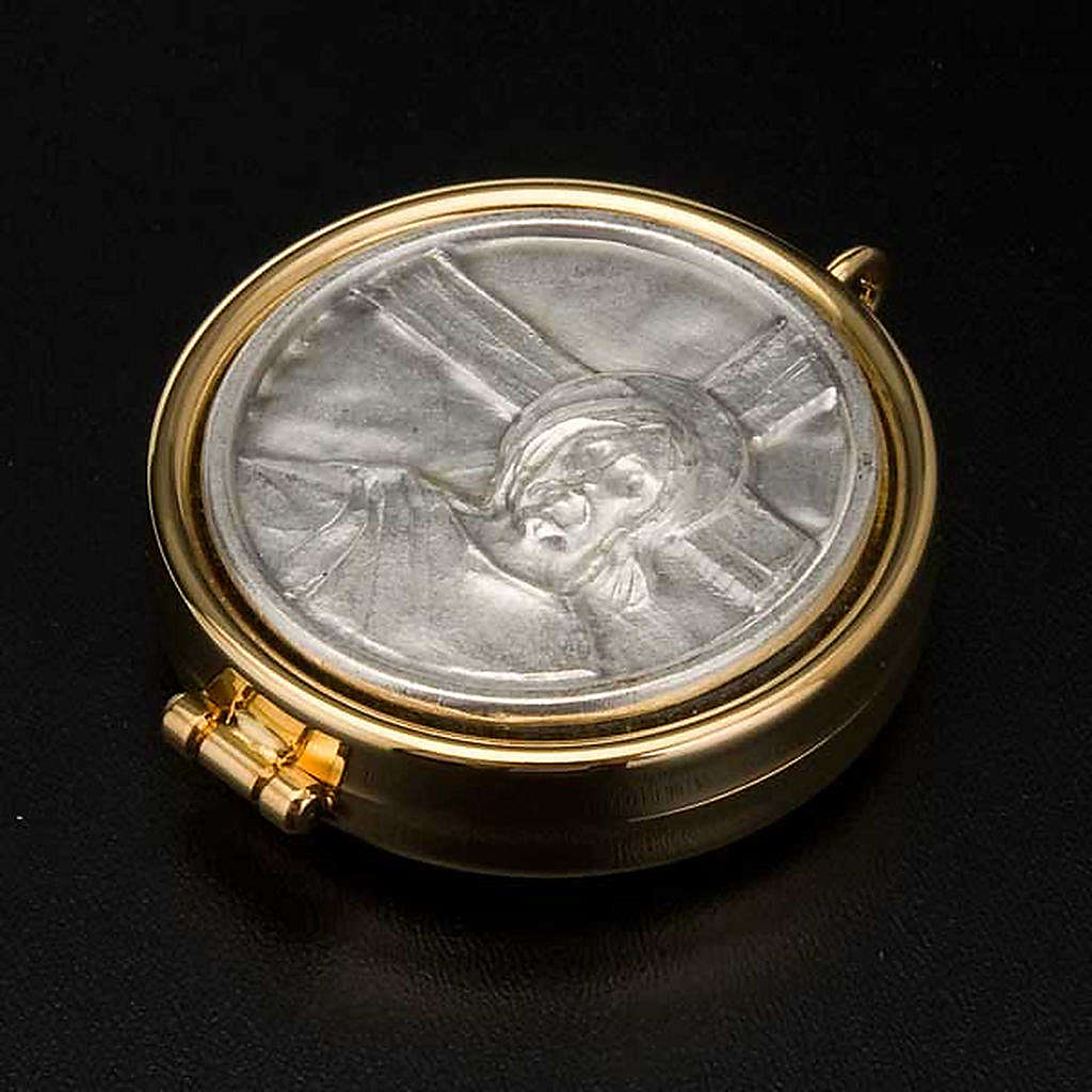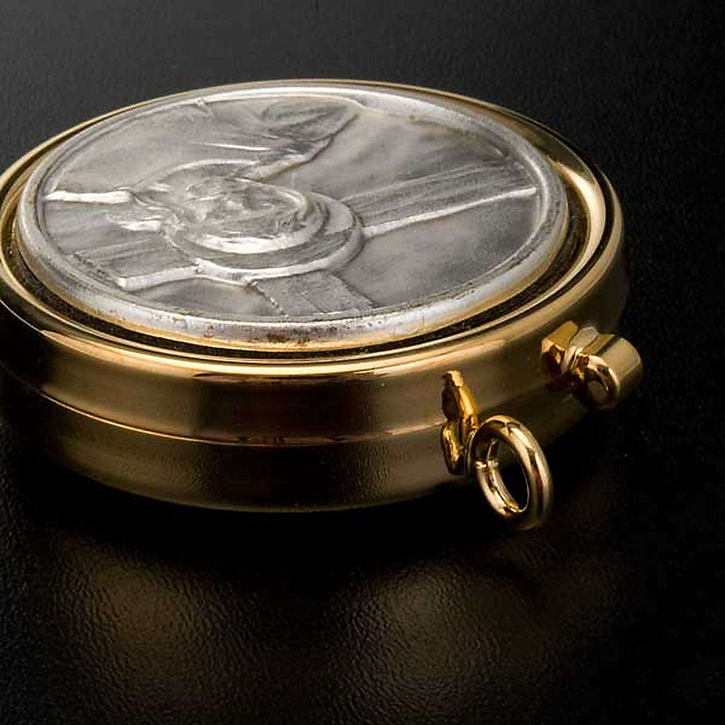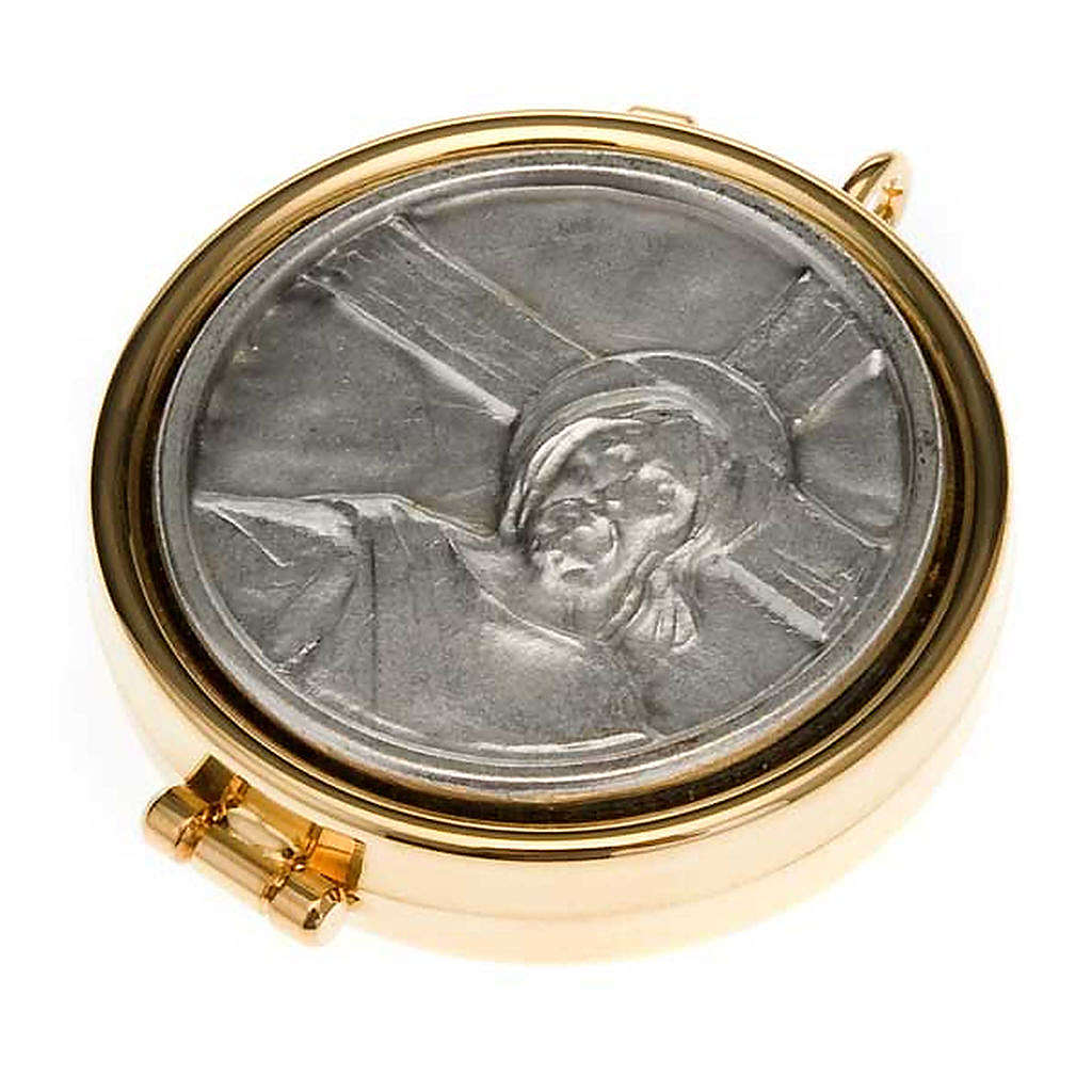 Cyborium ze złoconego mosiądzu: Jezus i krzyż.