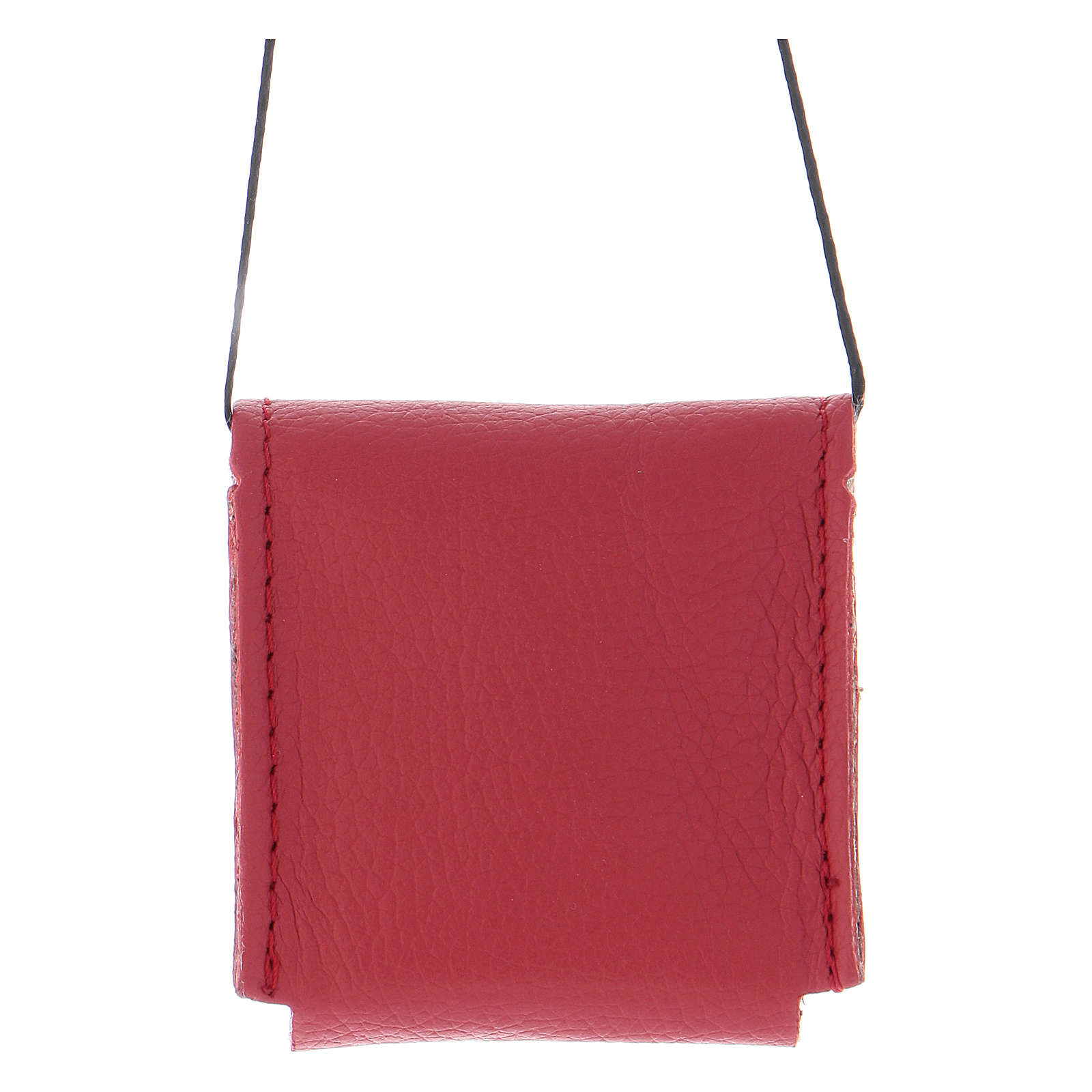 Etui na cyborium czerwone 6,5x6,5 cm z prawdziwej skóry, zrealizowane we Włoszech.