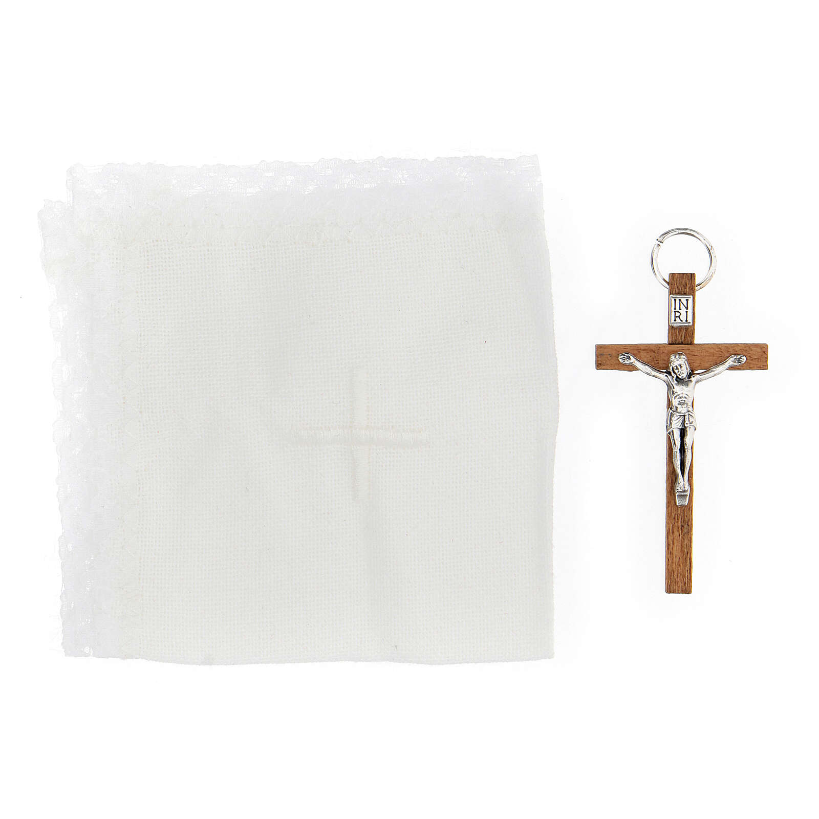 Zawiera cyborium z posrebrzanego metalu, mały krzyż i niewielkich rozmiarów puryfikaterz z lnu.