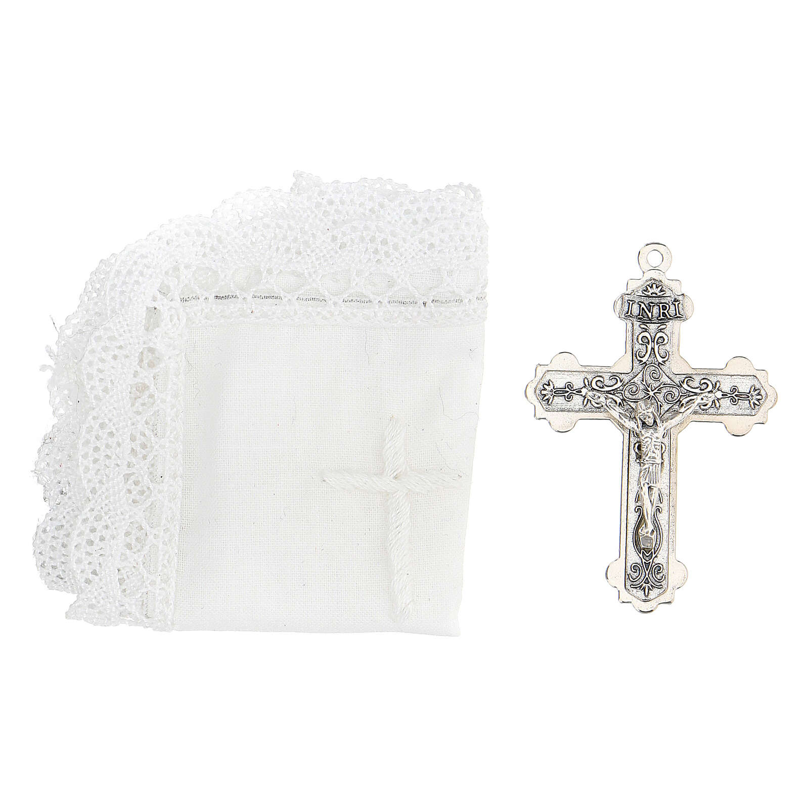 Pokrowiec z prawdziwej skóry, ręcznie wykonany, z cyborium ze złoconego mosiądzu, krzyżem z metalu i małym, lnianym materiałem białego koloru.