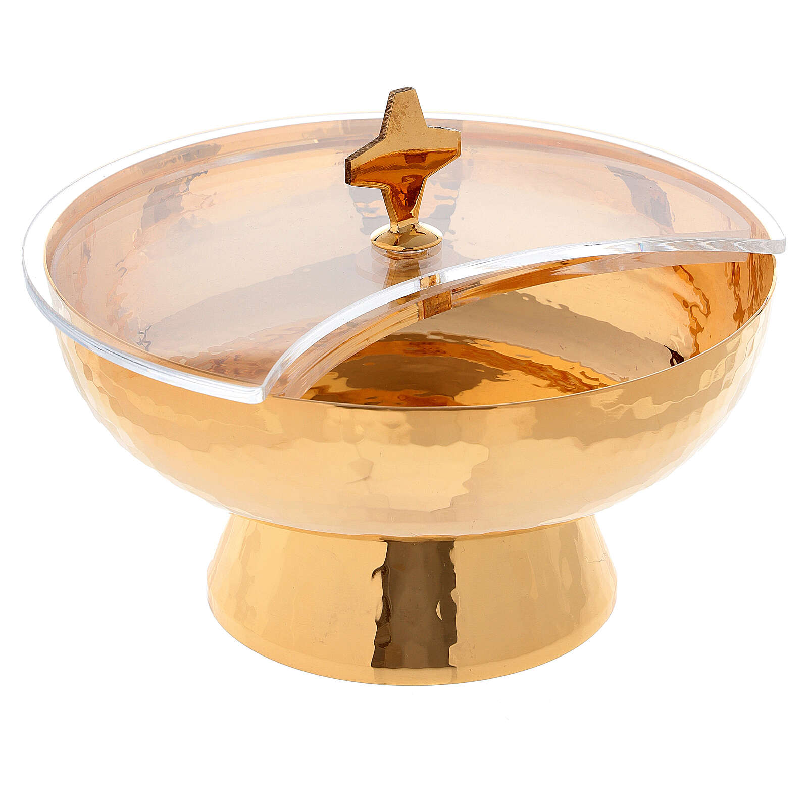 Ta puszka została wykonana przez rzemieślników małej, włoskiej firmy z wieloletnią historią w obróbce metali oraz ponad 100-letnim doświadczeniem w sakralnym wyposażeniu. Wszystkie użyte materiały pochodzą wyłącznie z Włoch. Każdy artykuł został ręcznie wykonany oraz ozdobiony przez mistrzów włoskiego rzemiosła. Oryginalne wzornictwo, wysoka jakość użytych materiałów oraz obróbka sprawiają, że każdy z artykułów jest unikalnym przedmiotem.