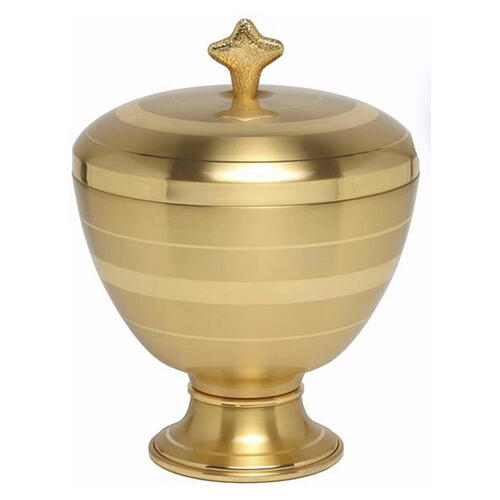Puszka mosiężna złocona, z pokrywką i z efektem toczenia.