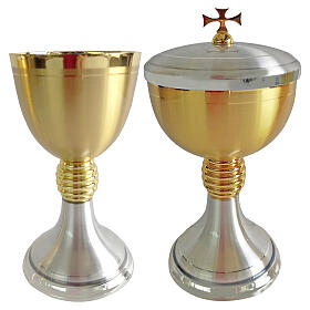 Kielichy, puszki i pateny z metalu posrebrzanego lub pozłacanego w różnych formach i wielkościach do celebracji liturgii.