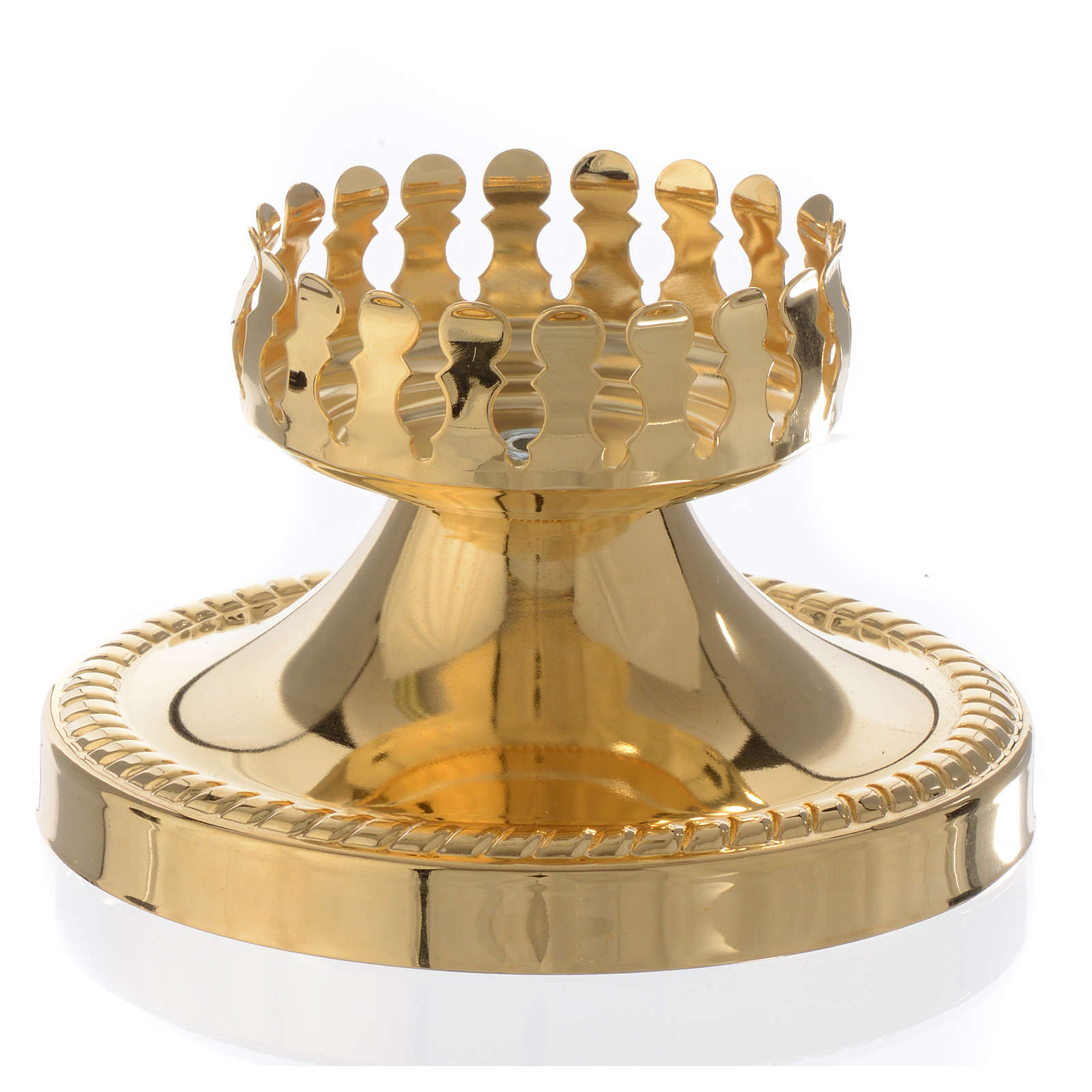 Wieczna lampka stojąca z mosiądzu z miejscem na rubinowy szklany klosz lub półklosz o średnicy 7,5 cm.