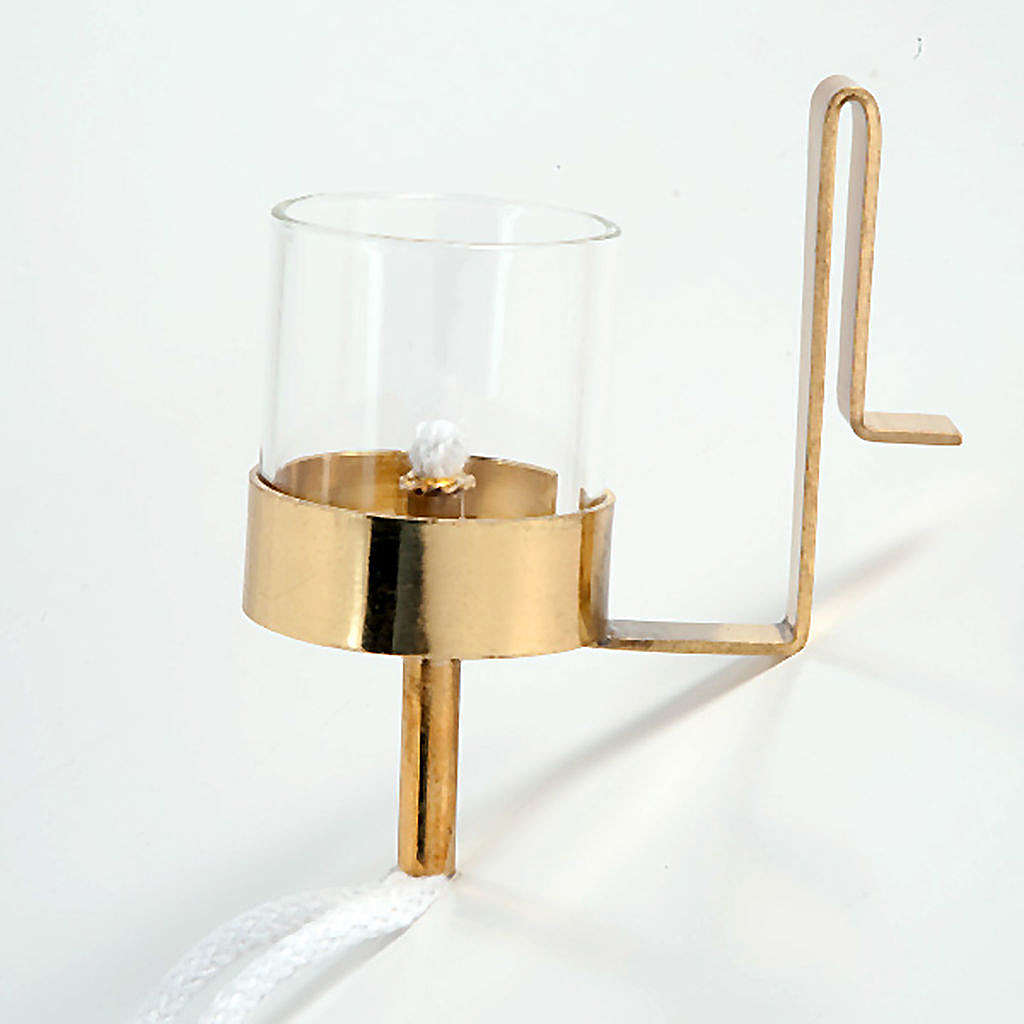 Wkład oliwny do osłony z mosiądzu, połączony z klasyczną osłoną do świecy tworzy wygodną i trwałą oliwną lampkę wieczną.