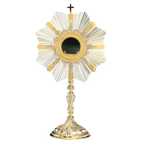 Monstrancja do kościoła ze szklanym kustodium, wykonana z dwukolorowego mosiądzu.