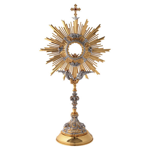 Monstrancja liturgiczna odlewana, złocona i srebrzona z aniołami, 71 cm