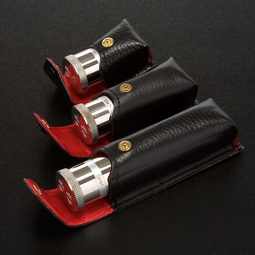 Etui zewnętrznie jest pokryte czarnym materiałem skóropodobnym, od wewnątrz zaś czerwonym materiałem. Naczynko jest z pozłacanego metalu o wysokości 3,2cm i średnicy 2,6cm.