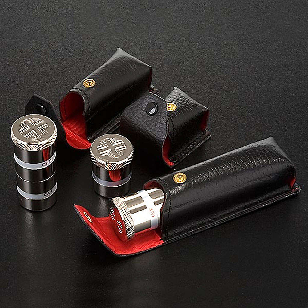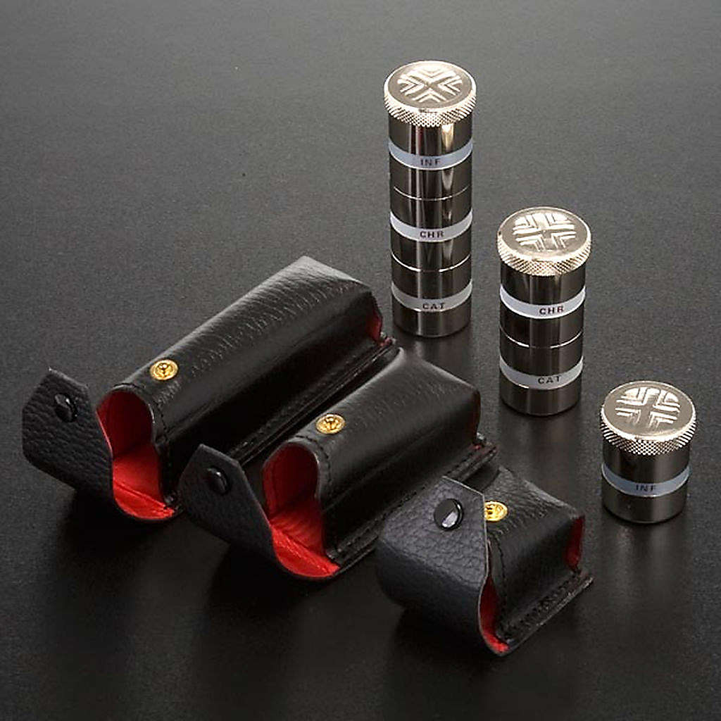 Etui z posrebrzanymi naczynkami na Oleje Święte