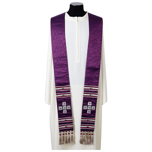 Fioletowa stuła z jedwabnego adamaszku z kryształkami, Vebi Confezioni