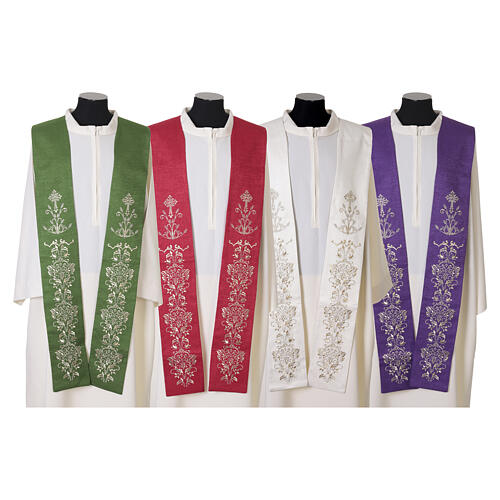 Stuła liturgiczna ze złotym, stylizowanym haftem motywu kwiatów, 100% poliestru