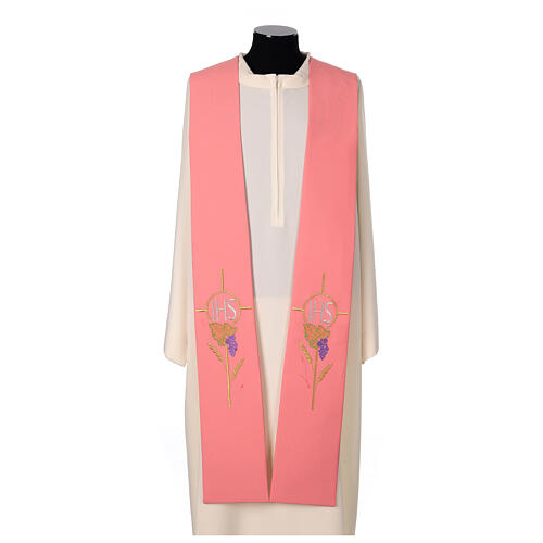 Stuła szeroka różowa jednokolorowa, z poliestru, z haftem liter IHS.