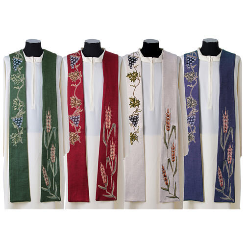 Stuła w szpic, z symbolami kłosów i winogron, 4 kolory.