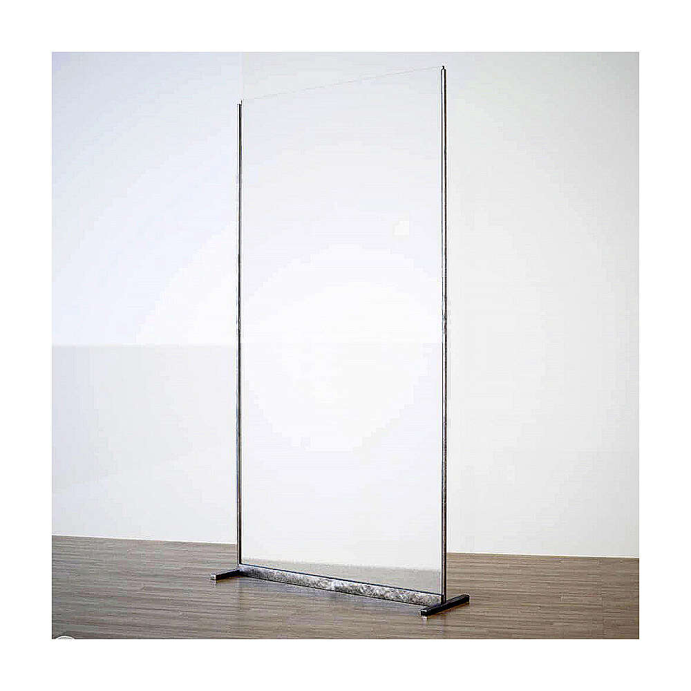 Przegroda ochronna wolno stojąca z pleksiglasu jest wytrzymałą i masywna. Podpórki są wykonane z metalu.