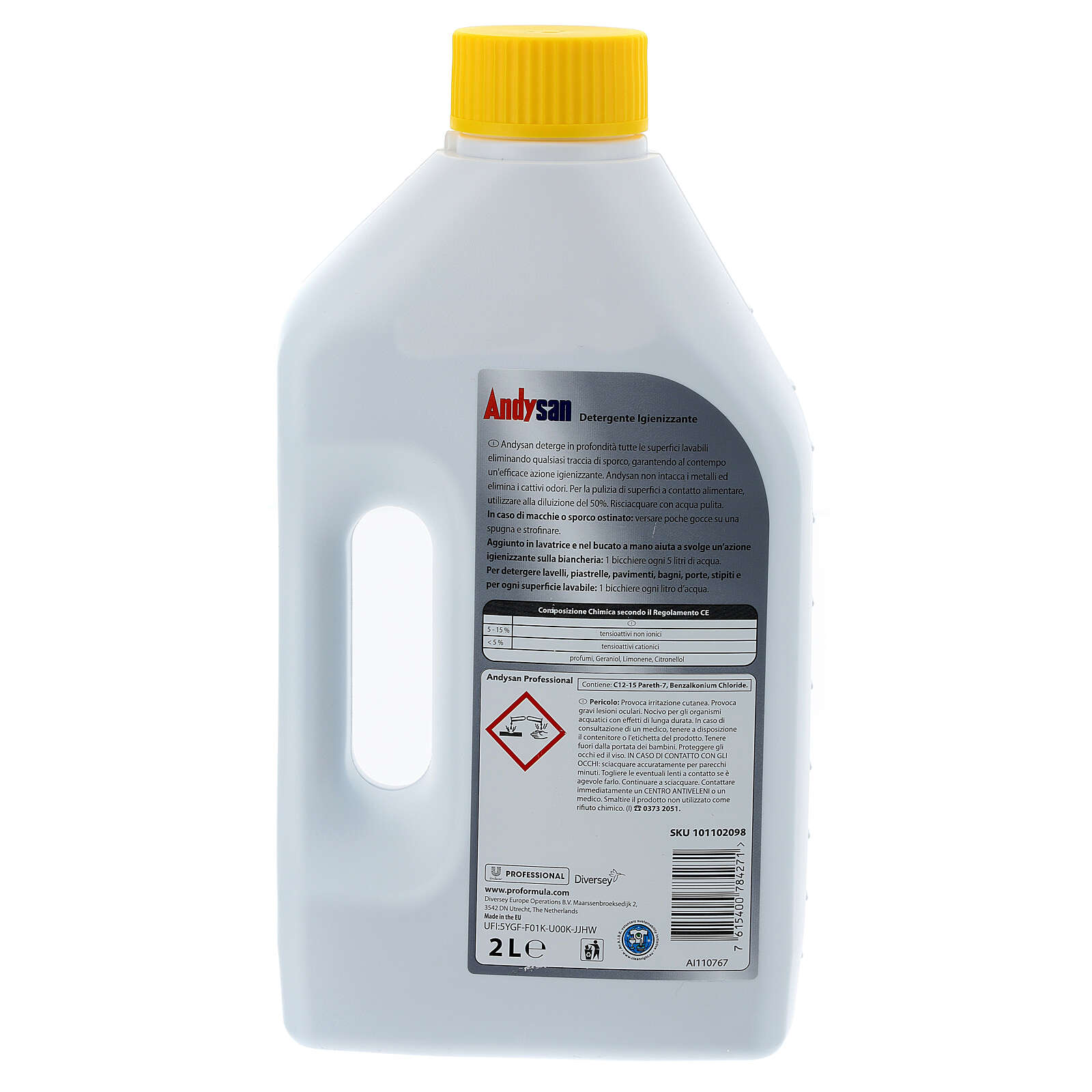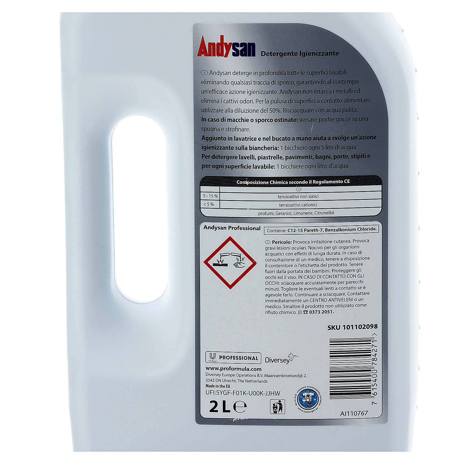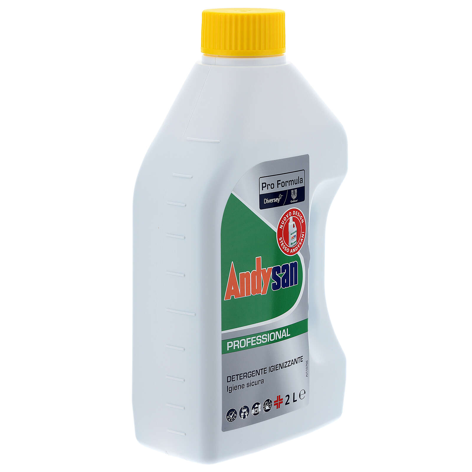 Środek dezynfekujący profesjonalny Andysan: detergent profesjonalny do dezynfekcji wszystkich powierzchni odpowiednich do mycia i do użycia podczas prania.
