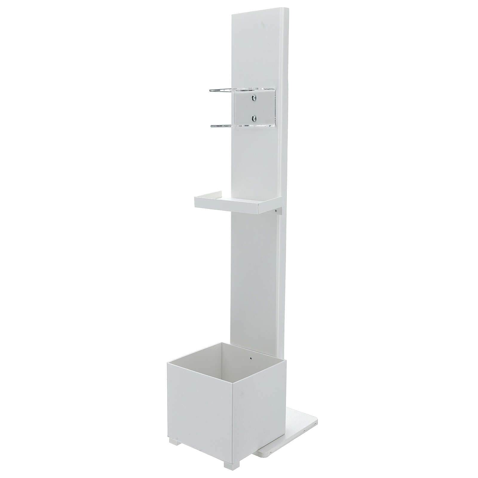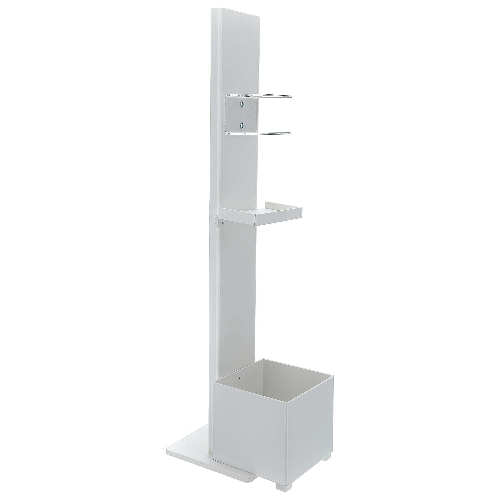 Stojak na dozownik środka dezynfekującego ręce z półką na rękawiczki i koszykiem, NA ZEWNĄTRZ