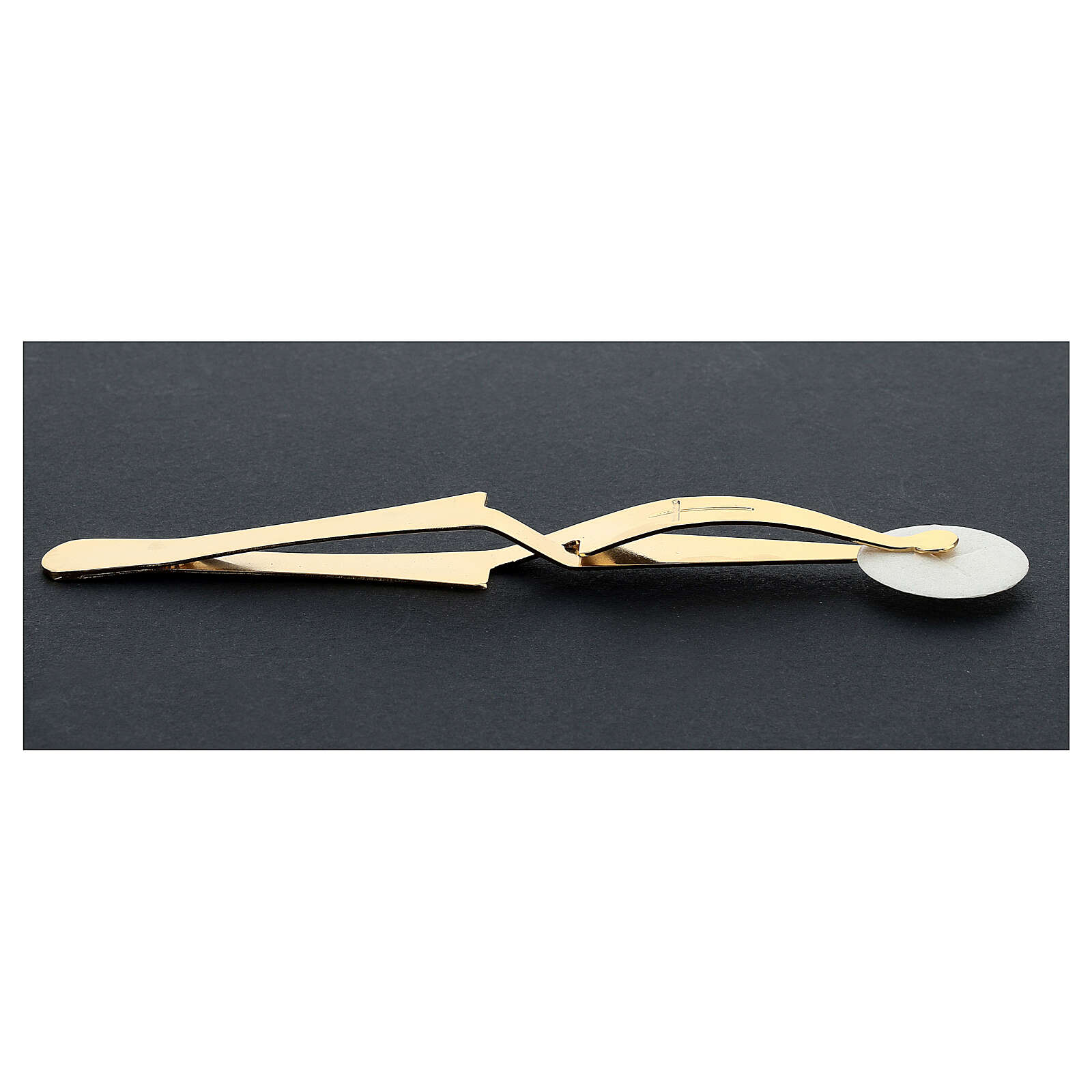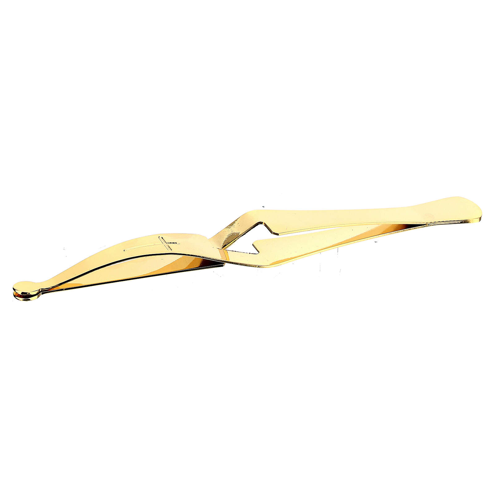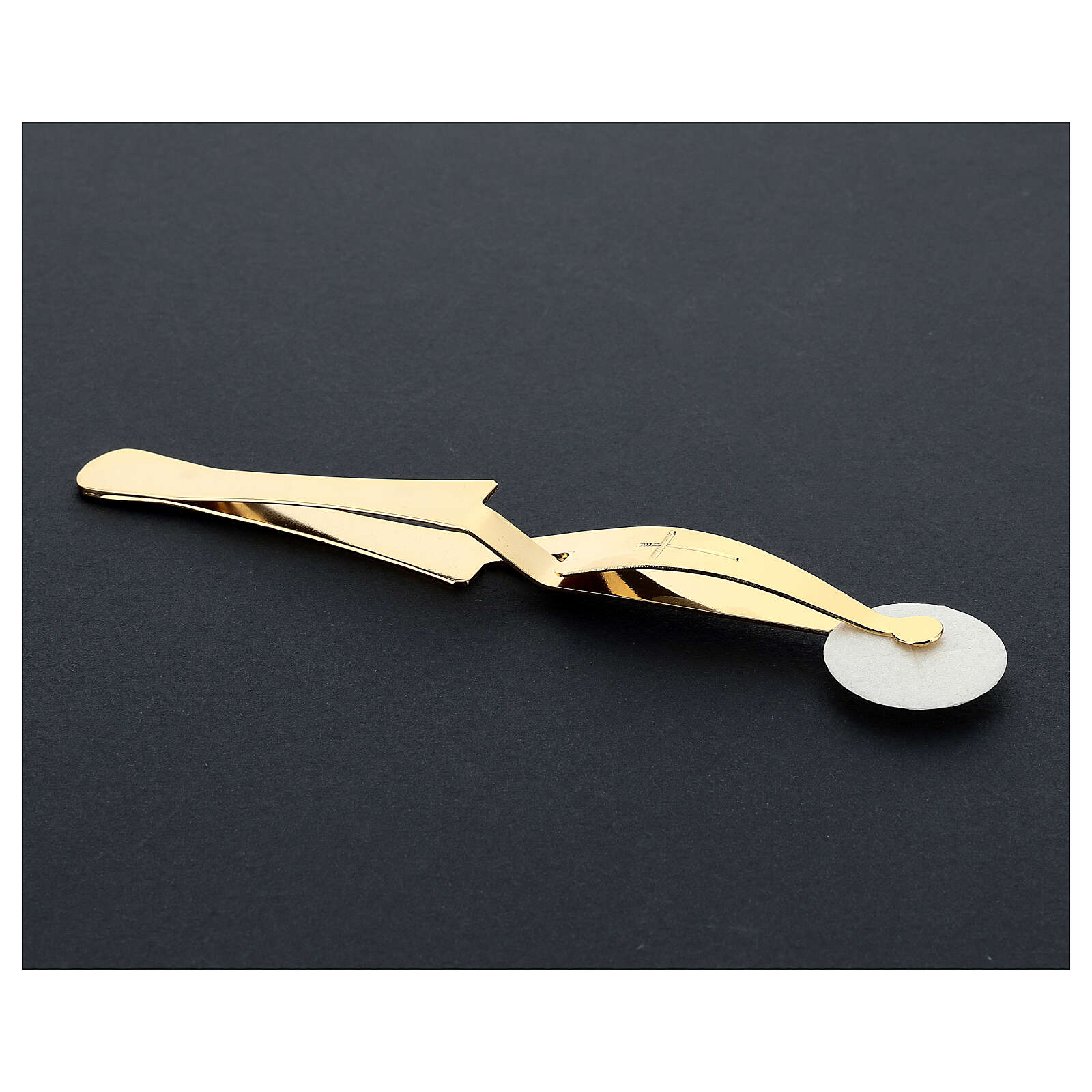 Szczypce do komunikantów z mosiądzu pozłacanego i z odwrotnym uchwytem.