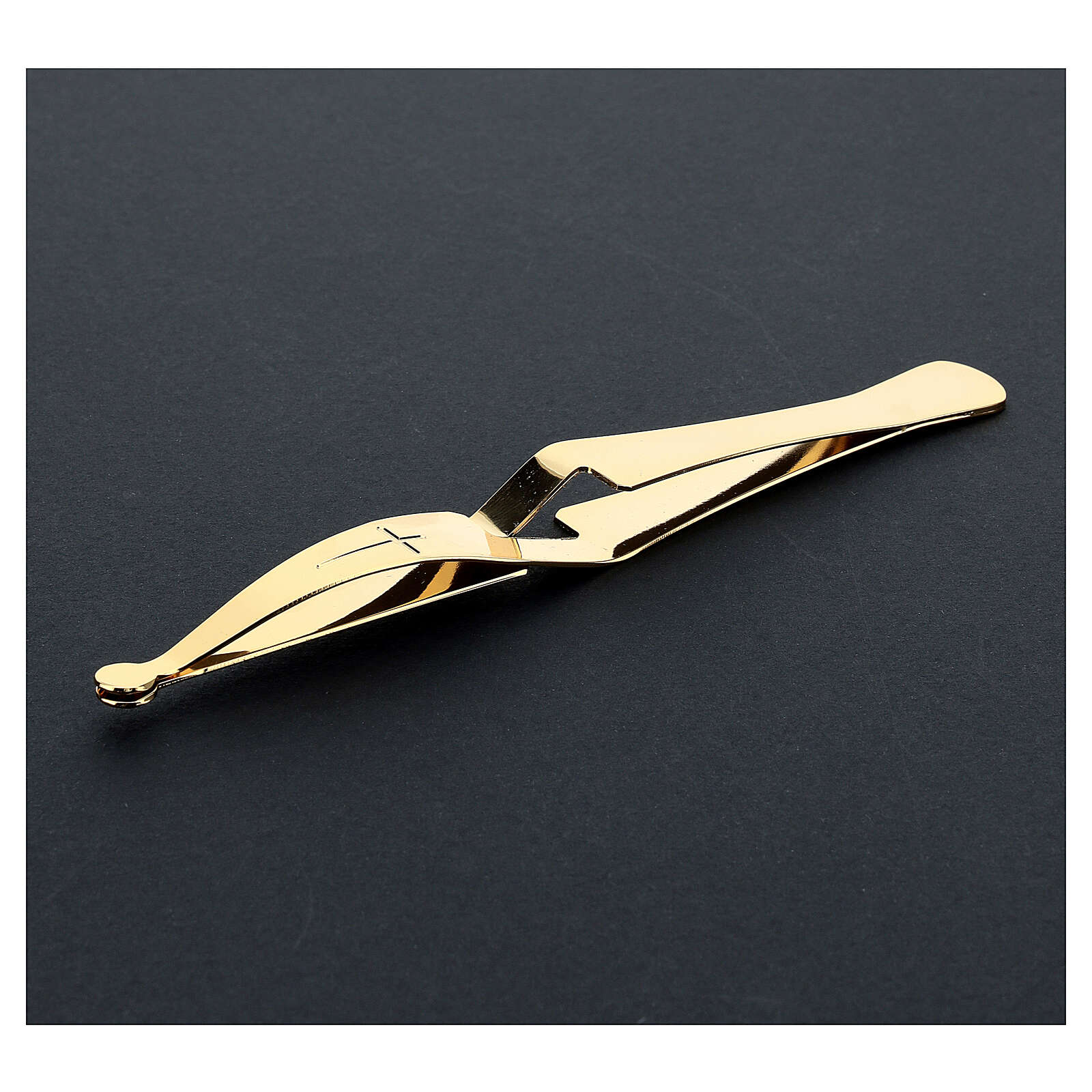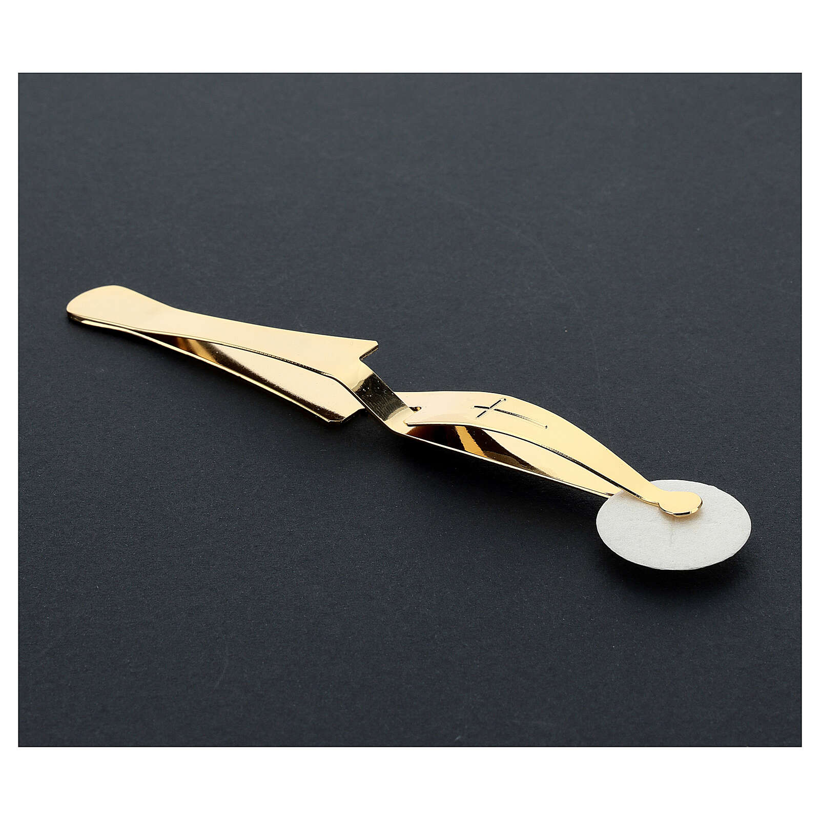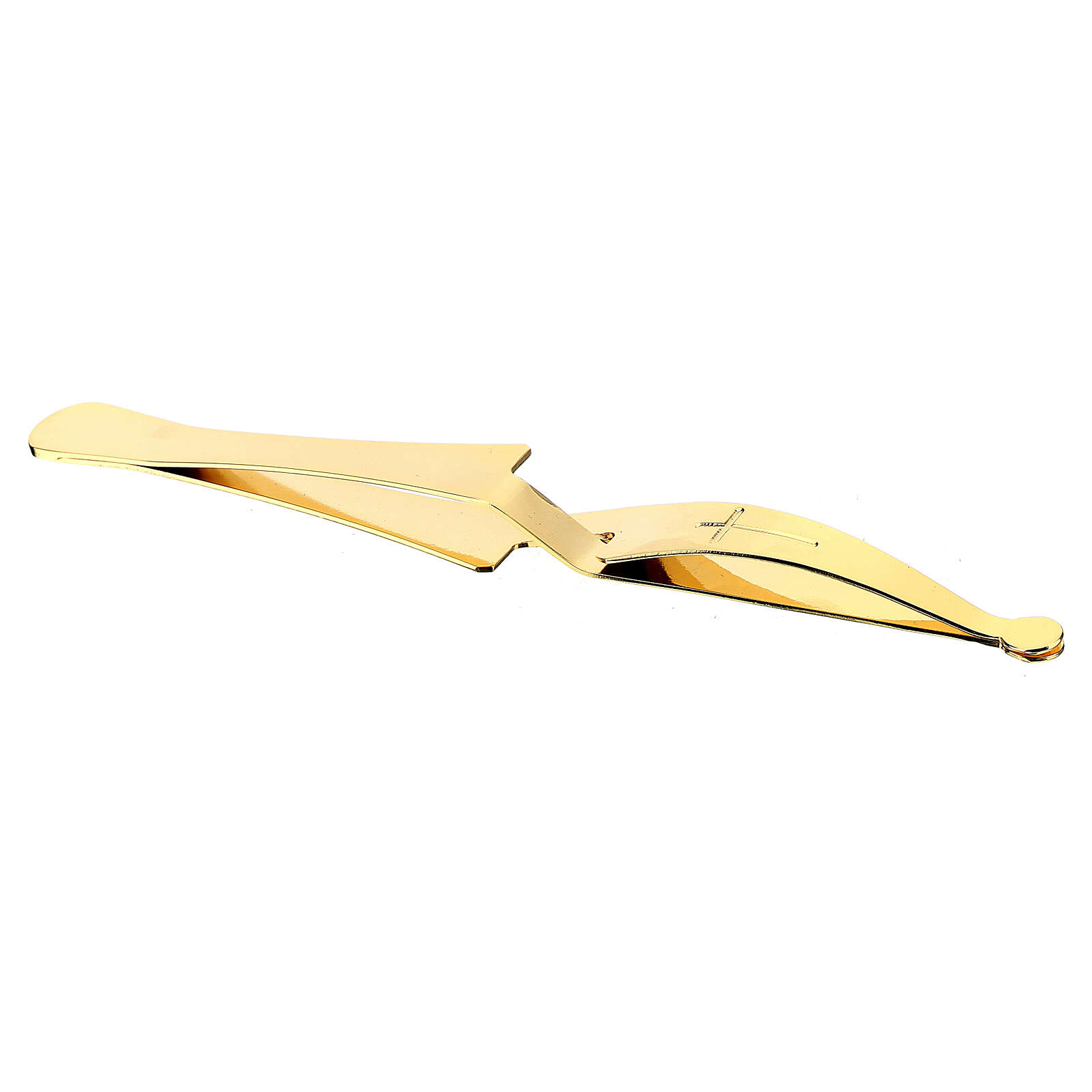 Szczypce do komunikantów z mosiądzu pozłacanego i z odwrotnym uchwytem.