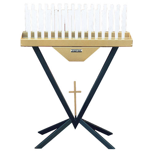 Świecznik wotywny elektryczny: 31 świec z żarówkami 12V, transformator i przyciski.