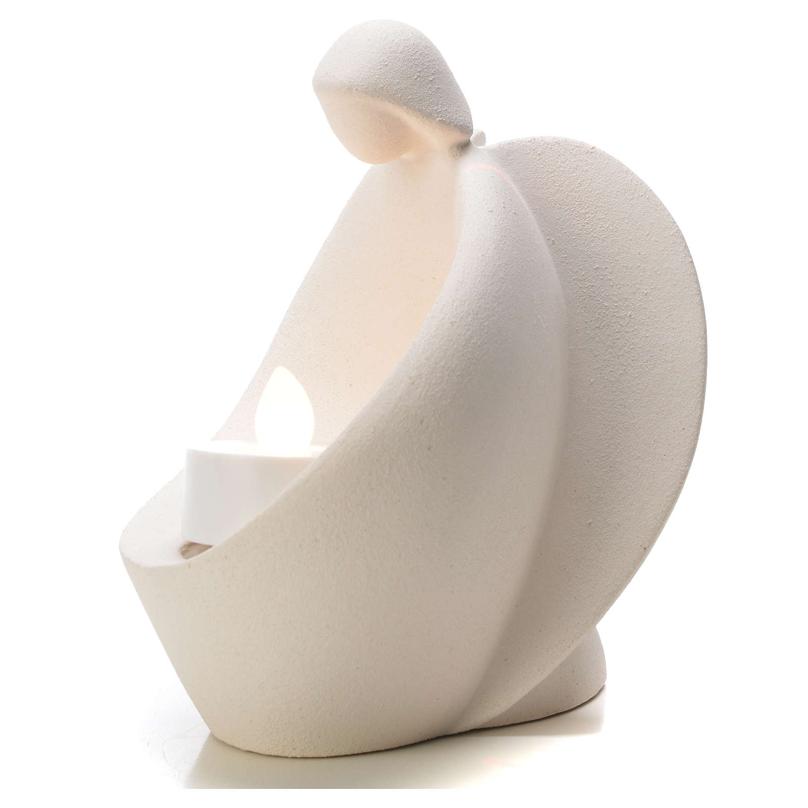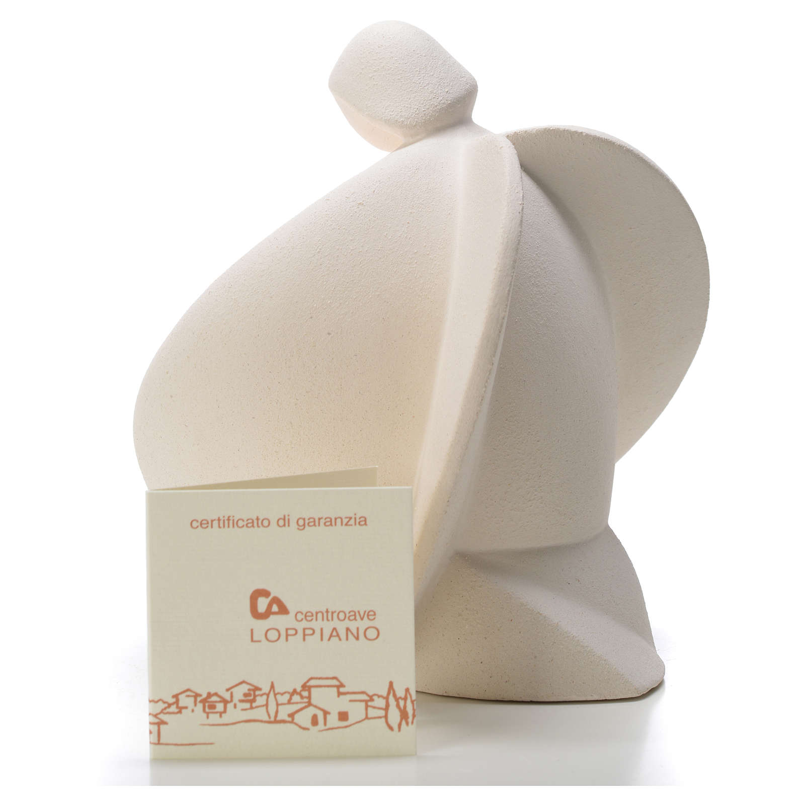 Ta stylizowana figurka anioła została ręcznie zrealizowana we Włoszech z białej gliny szamotowej.