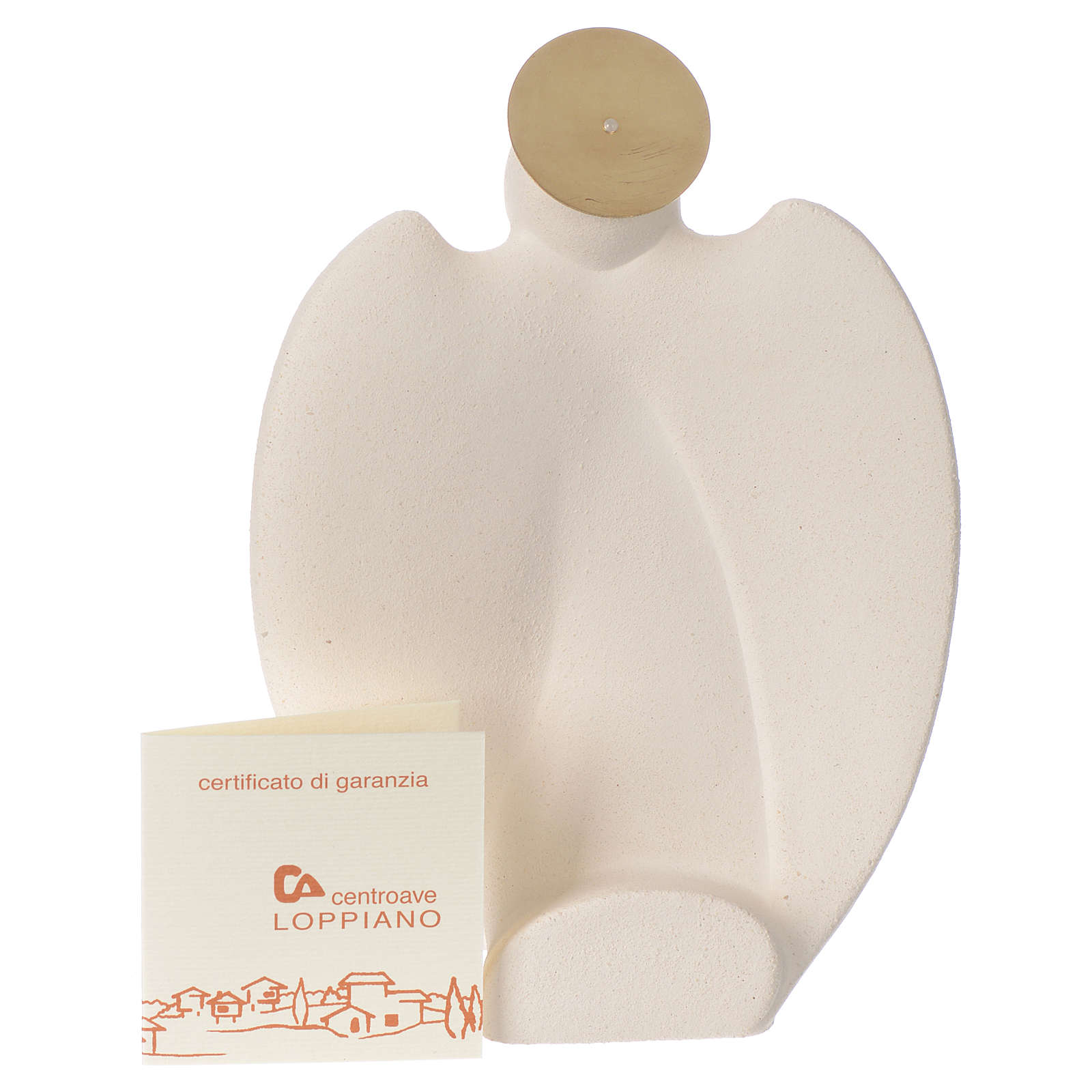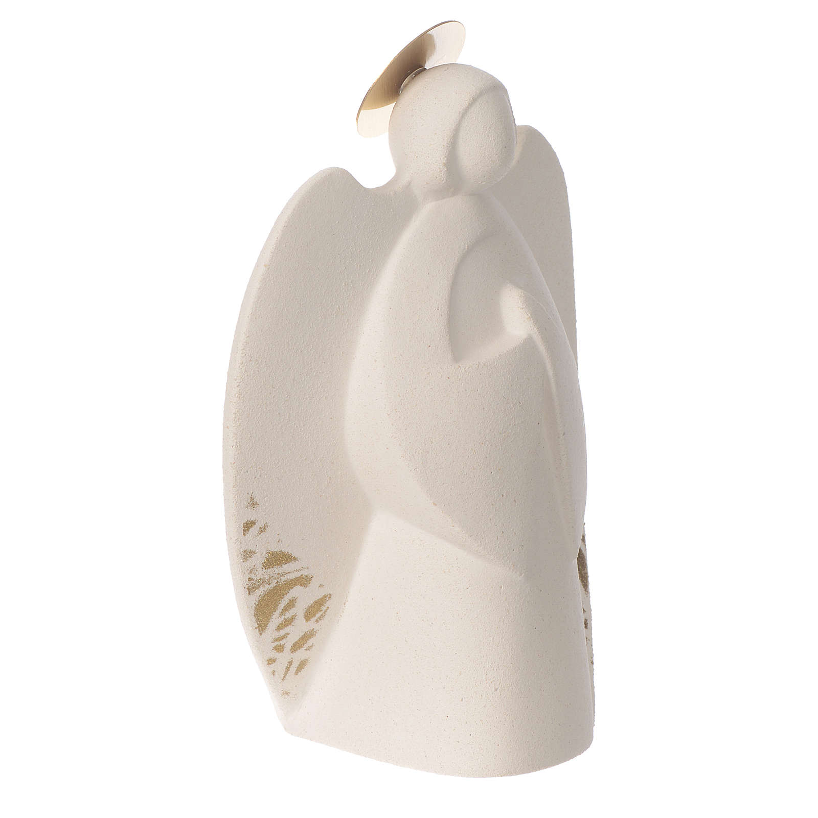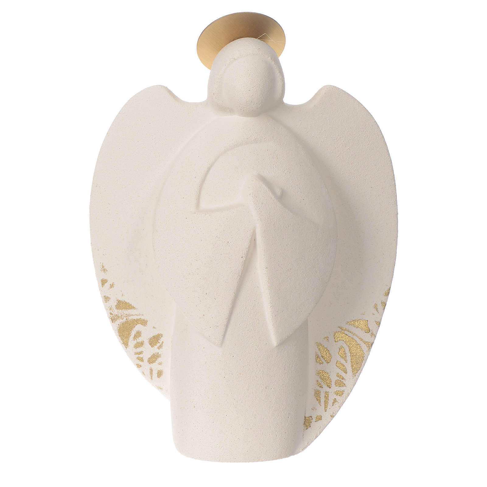 Anioł Serafin z białej gliny szamotowej ze złotymi odcieniami. Wykonany ręcznie we Włoszech w Centro Ceramiche Ave di Loppiano ( Florencja). Figurka wysokiej jakości, elegancka.