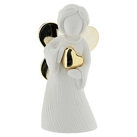 Figurka aniołka z białej żywicy, 12 cm, złote lustrzane wykończenie