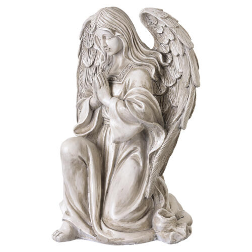 Figura anioła klęczącego w modlitwie - na zewnątrz, 50 cm, jasna żywica