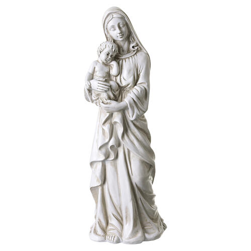 Figura Matki Bożej z Dzieciątkiem – żywica z efektem jasnego kamienia, na zewnątrz, ok. 40 cm