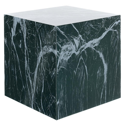 Urna na prochy - sześcian, błyszczący efekt marmuru zieleń Guatemala, 5 l