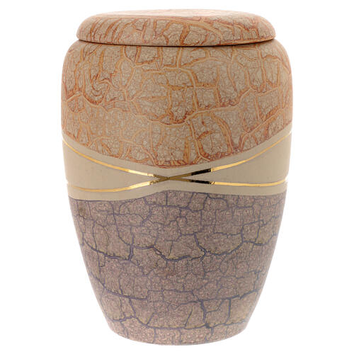 Urna na prochy z majoliki - marmurkowe wykończenie kolor kremowy, błękitny i pomarańczowy