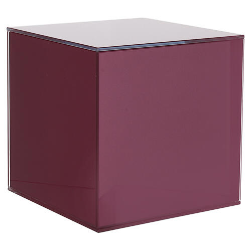 Urna na prochy z szkła, w kolorze czerwonym - sześcienna, 21 cm