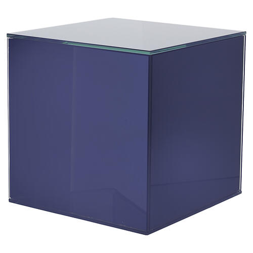 Urna na prochy ze szkła - niebieska, sześcienna, 20 cm