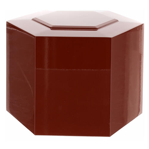 Urna na prochy sześciokątna, z boniowaną dekoracją, lakierowana na czerwono, wyk. błyszczące, 5 l.